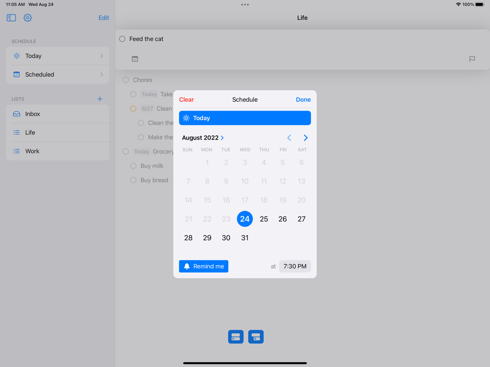 Set date and add reminders to tasks, stop forgetting and get more things done.