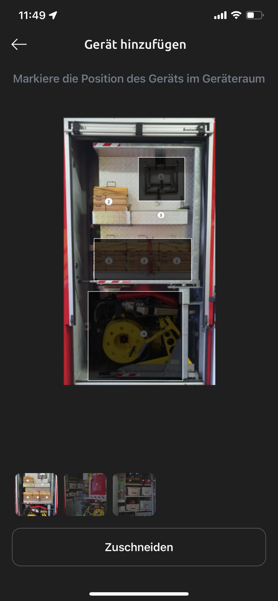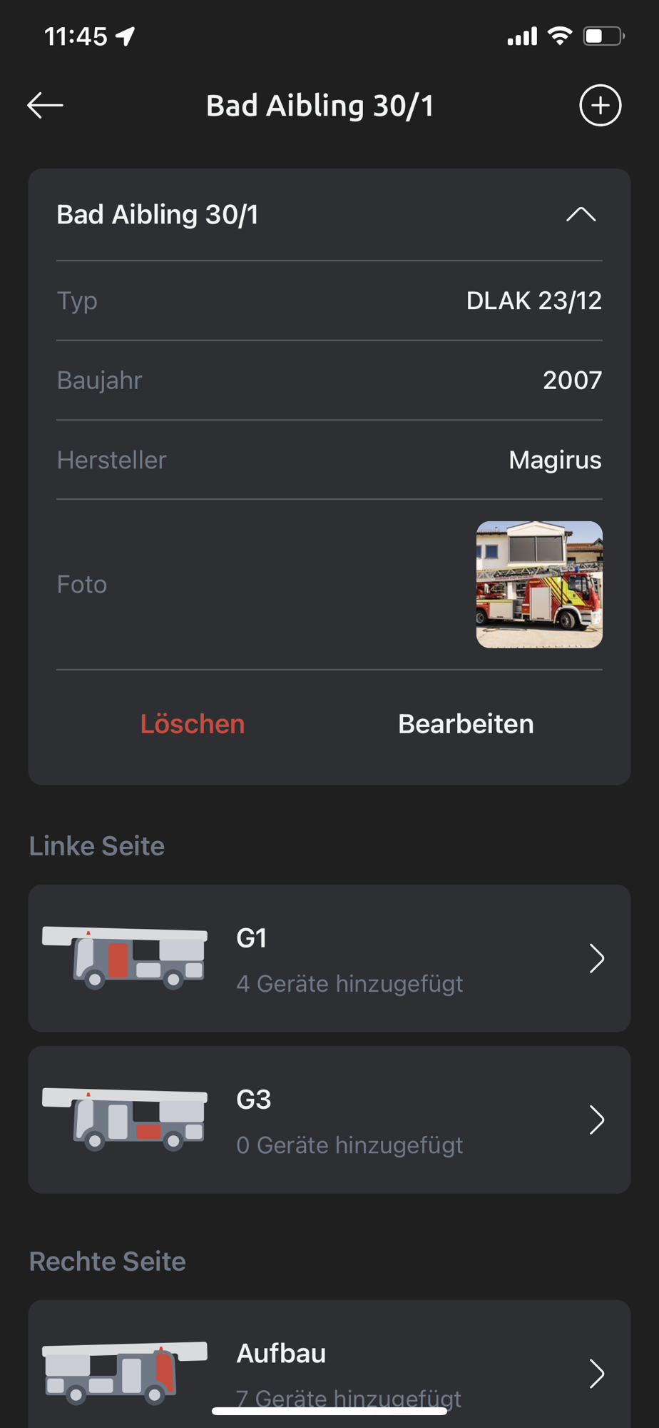 Der ELF lässt sich alle deine Gerätschaften deiner Fahrzeuge erfassen. Anschließend kannst du bequem nach einem Gerät suchen und Informationen darüber erhalten.