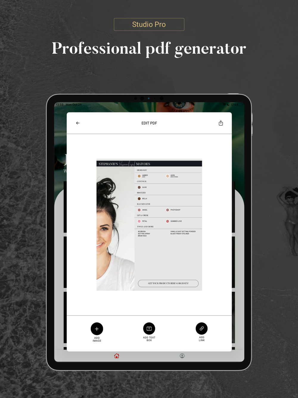 $9.99 per month for Studio Pro (3-day free trial) to provide you with unlimited access to the Makeup Manager by MM AI-powered color matcher, shareable personalized photo tips, custom PDF creator, options to upsell products, and library of your past matches while you maintain an active subscription.