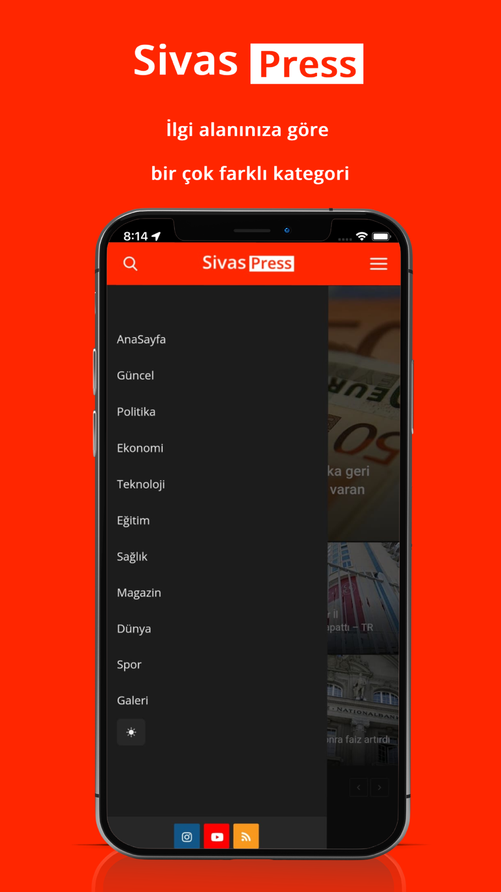 Sivas Press uygulaması ile ulusal ve uluslararası kaynaklardan Dünya, Türkiye ve Sivas ile ilgili en güncel haberlere konularına göre kategorize şekilde ulaşabilirsiniz.Haberler, haberin kaynağındaki haliyle ve kaynağı belirtilerek şeffaf şekilde sunulur.Uygulama gelişmiş kullanıcı deneyimi ve dinamik kullanıcı etkileşimi sunar.