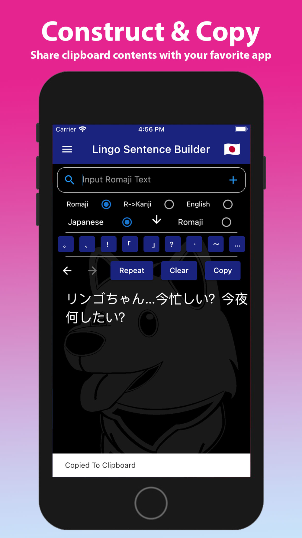 • Copy your creation to the device's clipboard using Lingo's Copy button.
