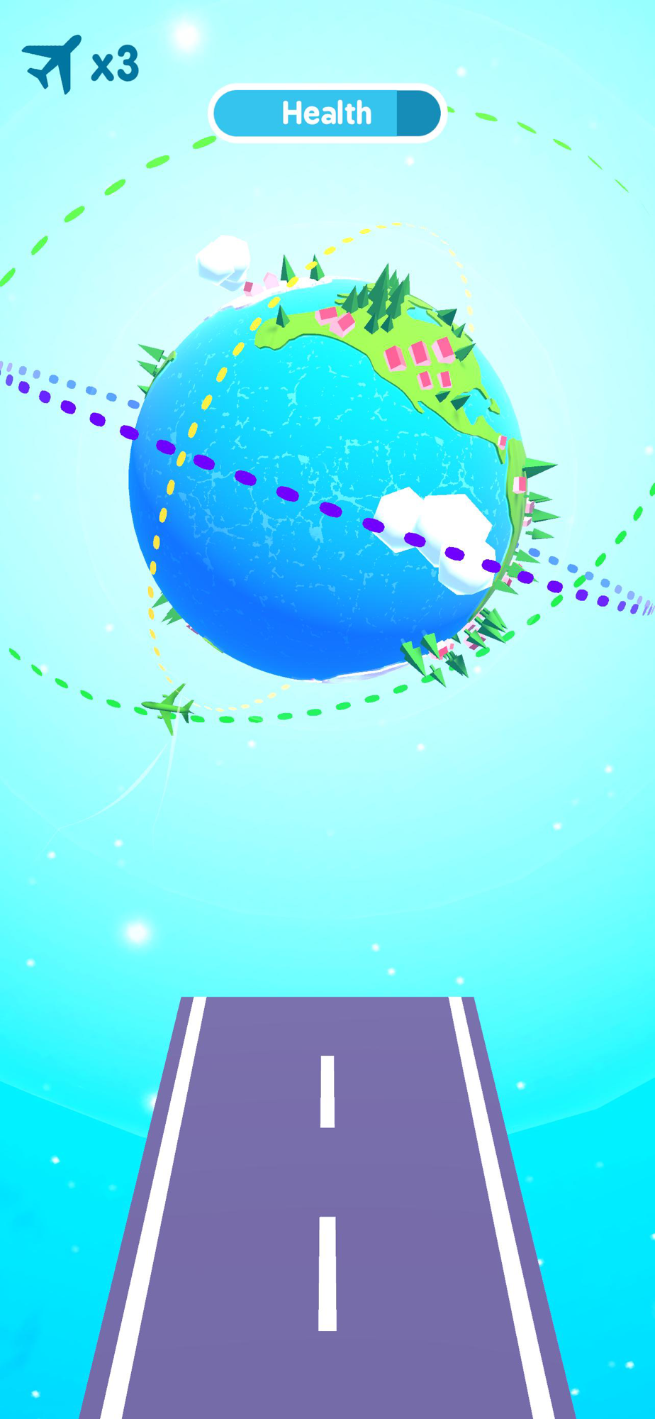 Color match and throw your plane into the right orbiting lane but be careful not to crash your planes or you will destroy planet earth!