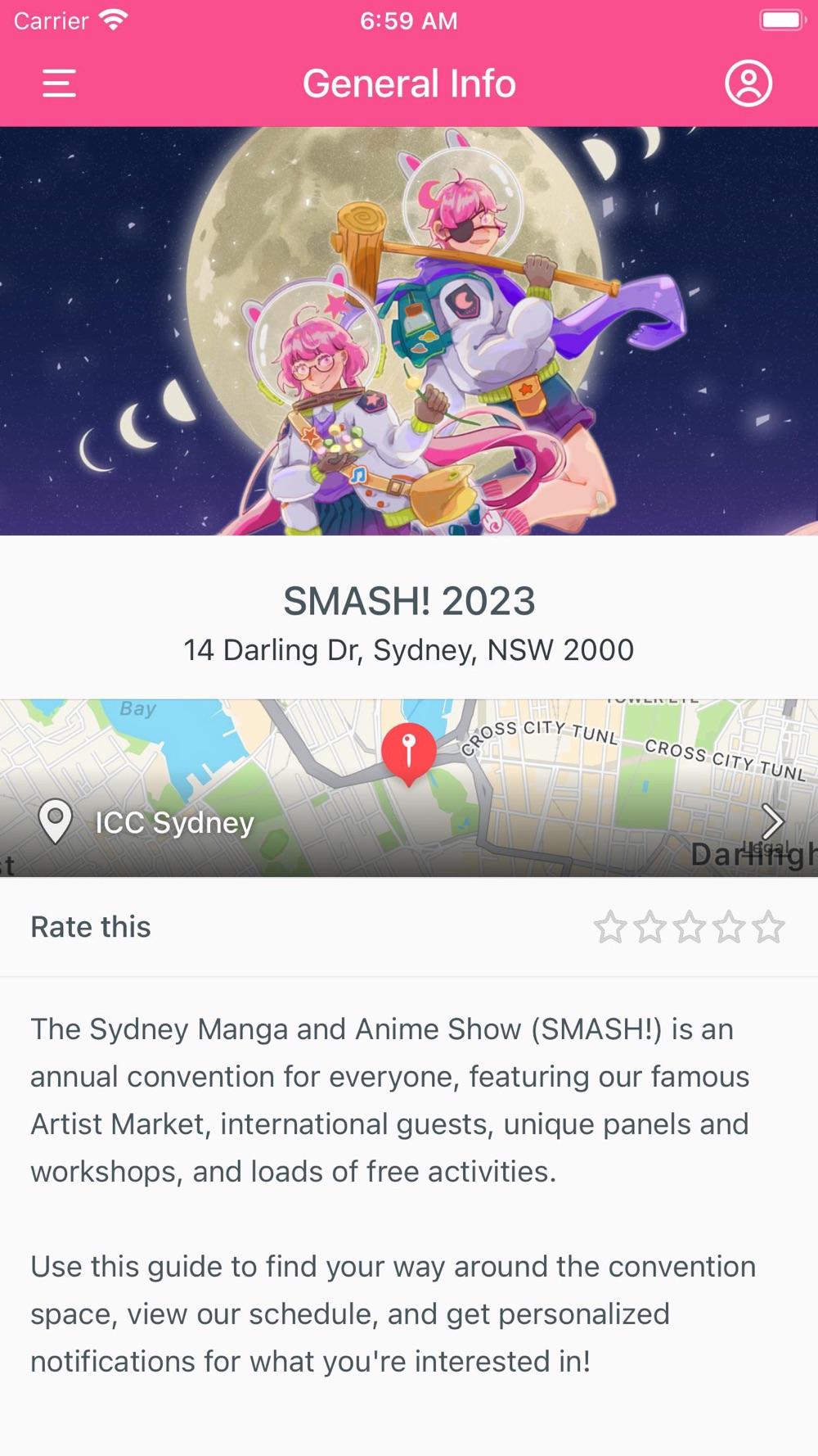 Get ready to shoot off on a cosmic journey at the ICC Sydney on July 1st and 2nd, 2023 with the incredible SMASH! app as your ultimate event companion! This app will be your gateway to an unforgettable weekend filled with thrilling experiences and non-stop excitement. With the ability to create your own personalized schedule, receive timely notifications, and discover a wide list of events, all within a single app - there's nothing better you could ask for to help you on your way to SMASH! 2023.