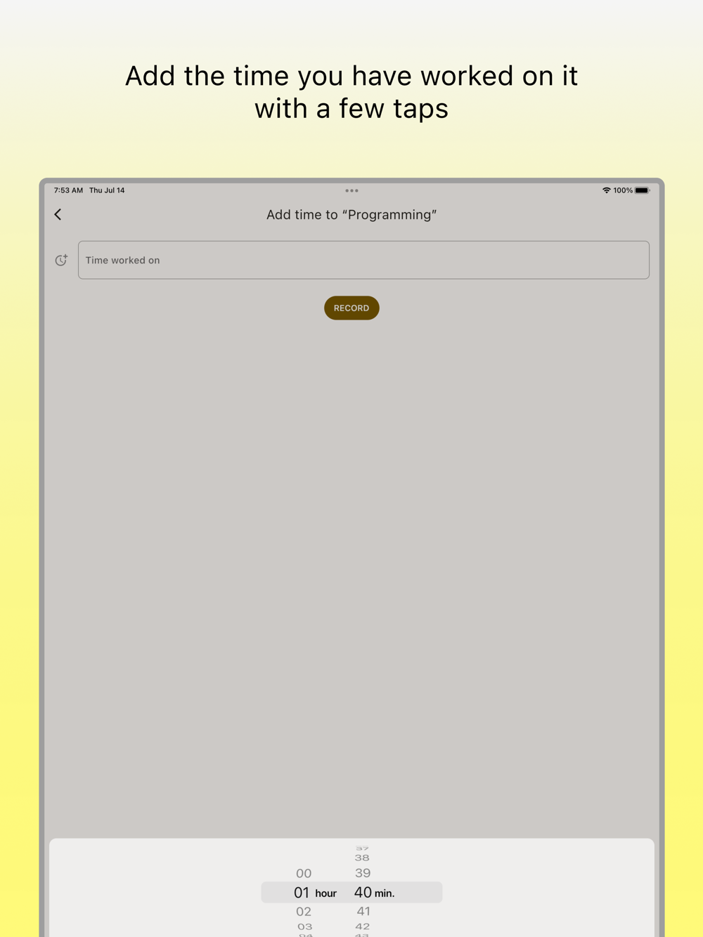 - When you finish your study, for example, add the time you have worked on it with a few taps.