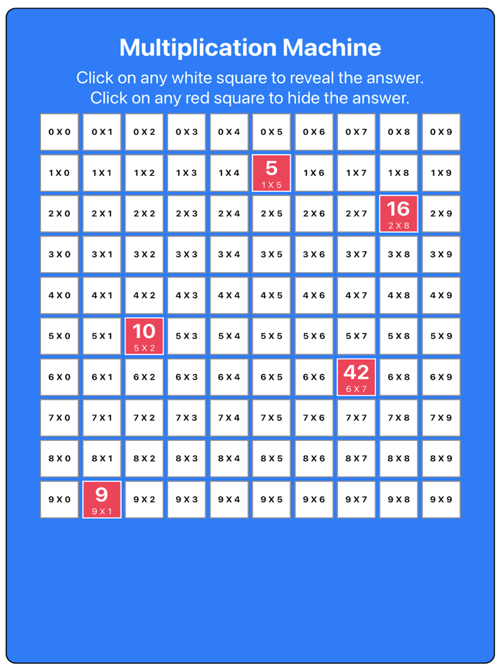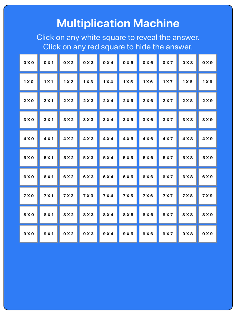 Empower your kids to teach themselves their multiplication tables with "My Multiplication Machine".