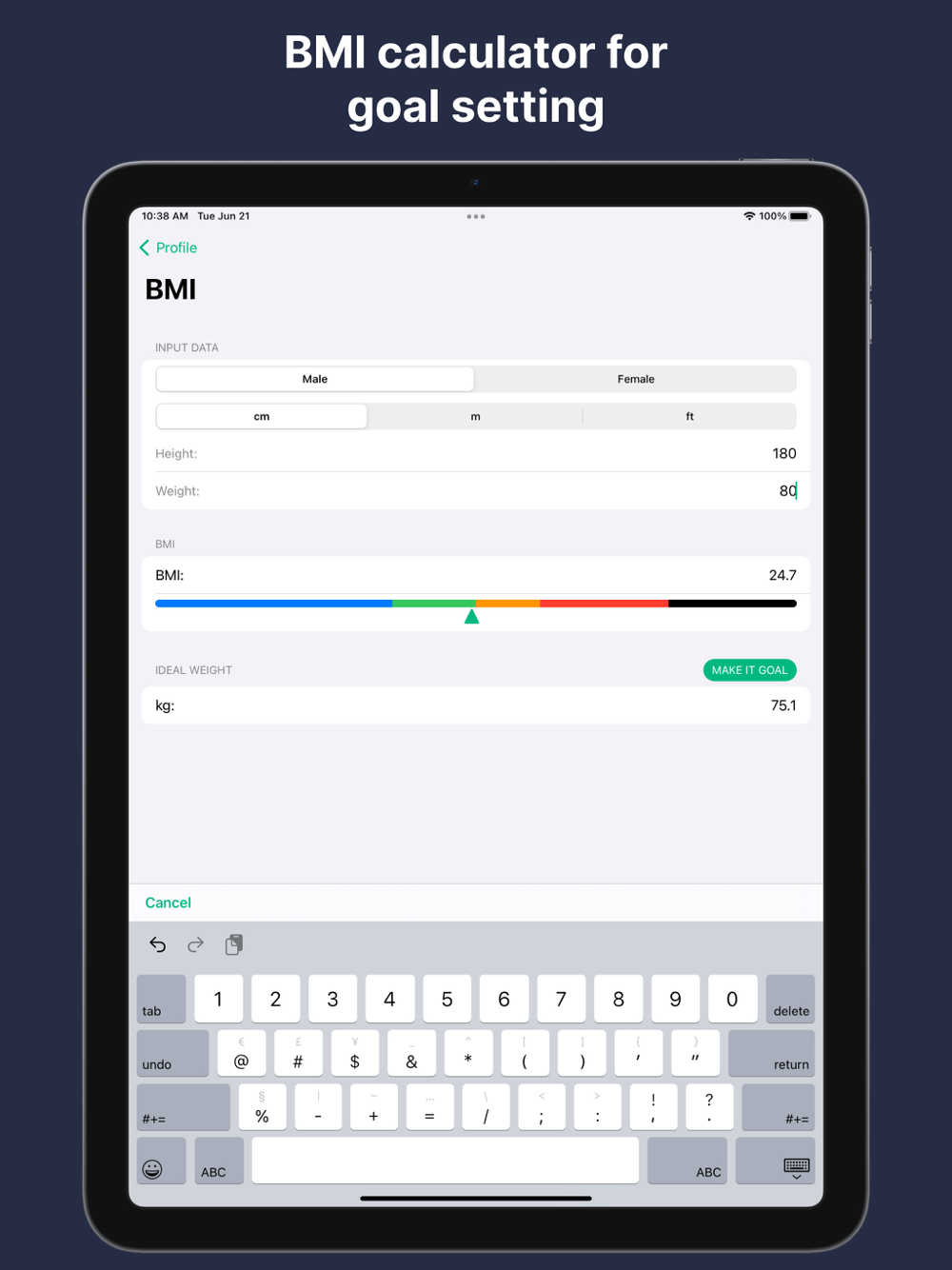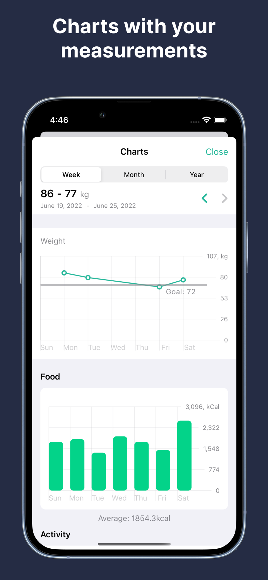 The app allows to record daily weight and additional measurements, set goals and track them. In addition to weight measurements, you can keep track of nutritional value, activity and water intake. This way you will have more accurate statistics on how nutrition and activity affect your performance.