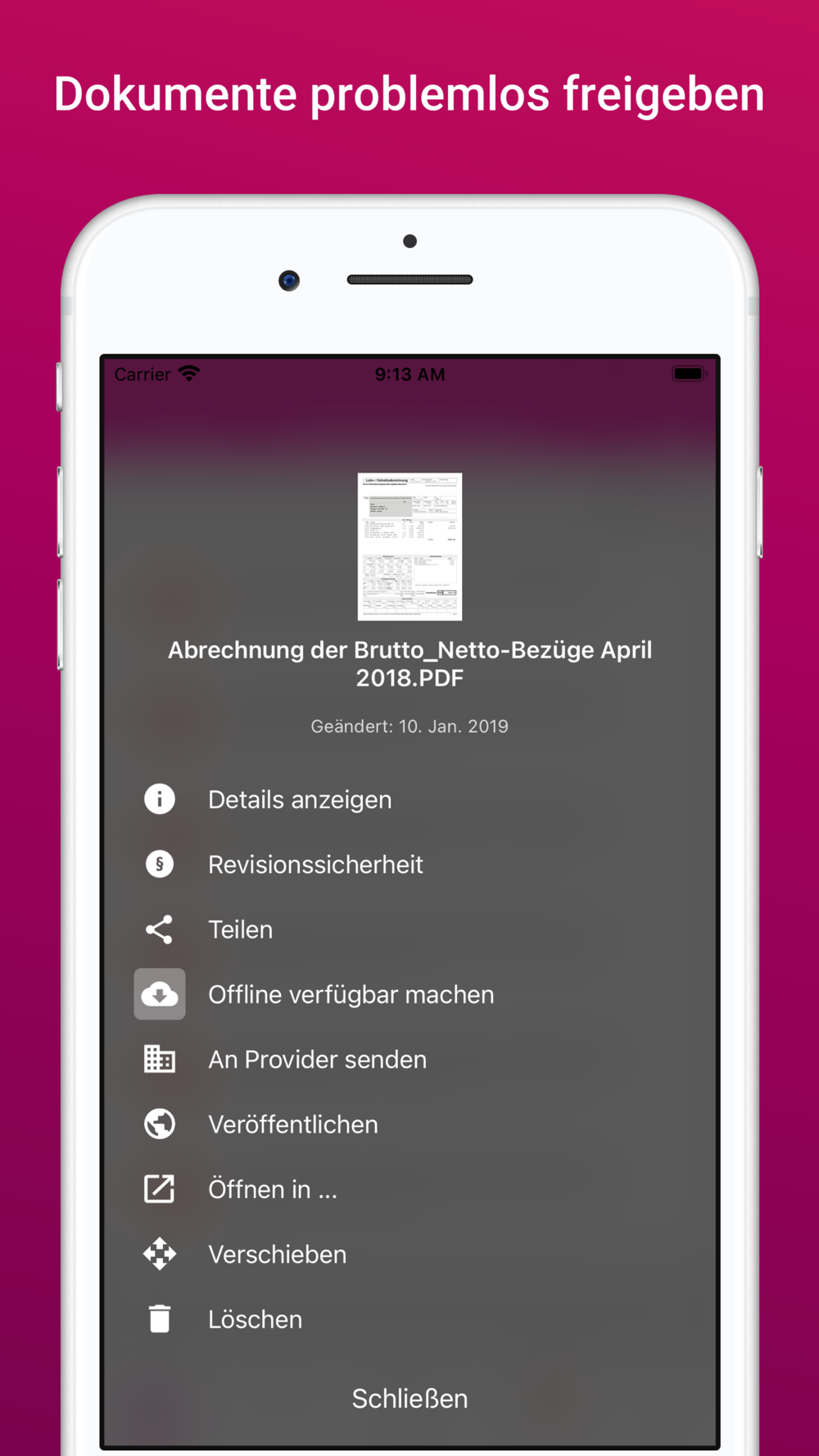 Ihre Steuerberatung benötigt eine Gehaltsabrechnung? Über eine passwortgeschützte und zeitlich begrenzte Freigabe können Sie Dokumente teilen oder veröffentlichen.