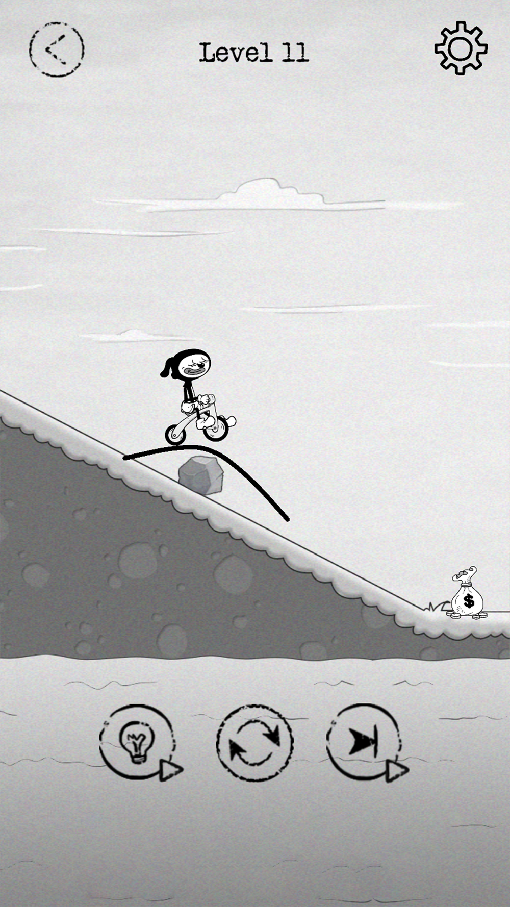 - Drag with one finger to draw a bridge stable enough for your car to hit the gold bag. You can only draw one line, so make sure safety comes first.