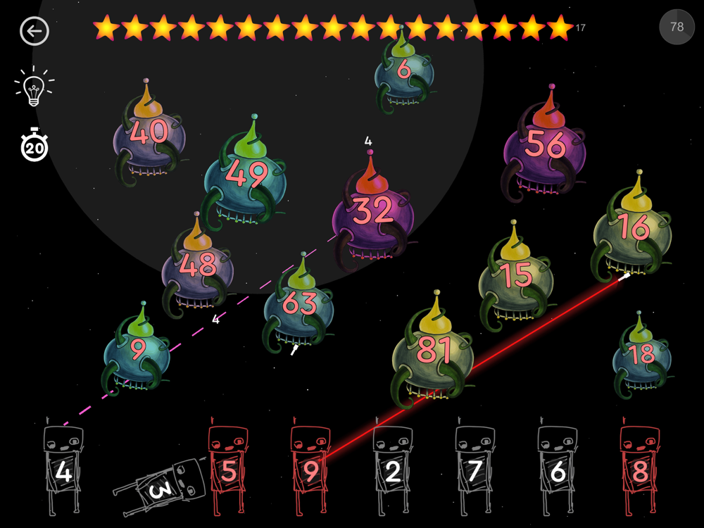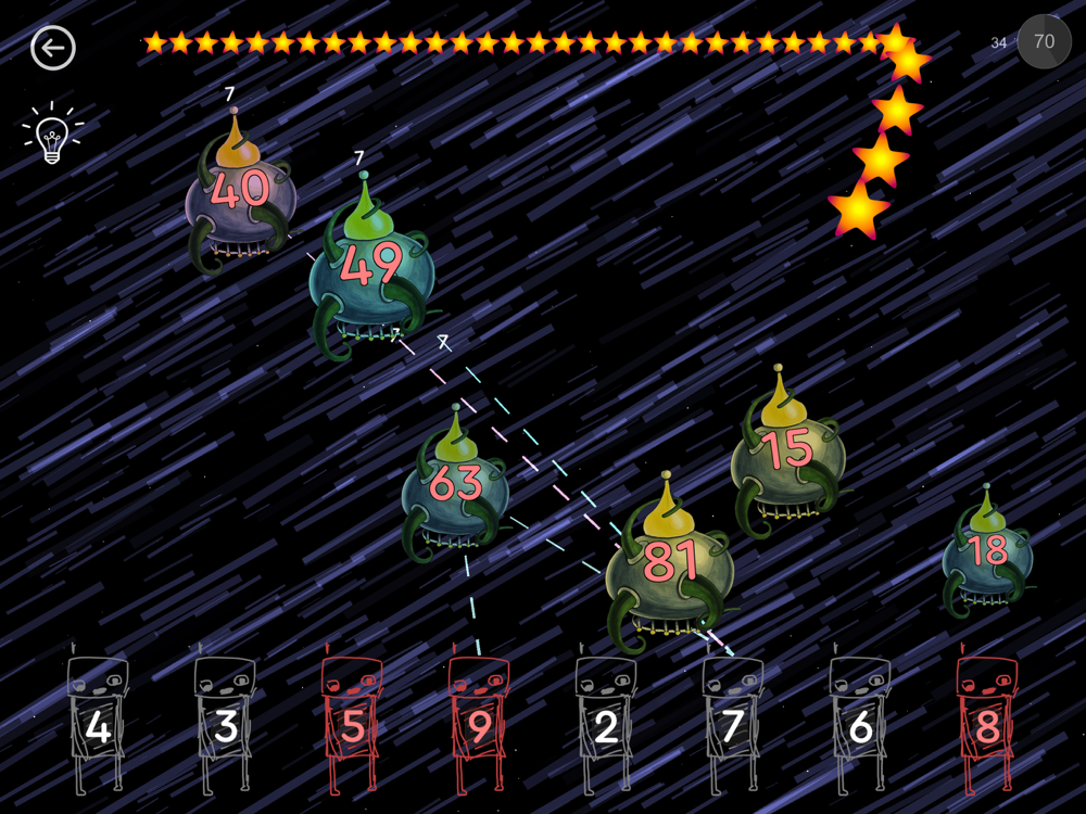 6. Hints. You can get a hint by clicking on the corresponding number, this allows you to memorize those examples that you don't know well yet, but try to memorize them at once, because for each hint a point is taken off. There is also a hint that does not spend points - to do this, click on the light bulb during the game, the entire multiplication table up to 10 will be displayed on the screen. But it spends more time, which you need to save when passing the level.