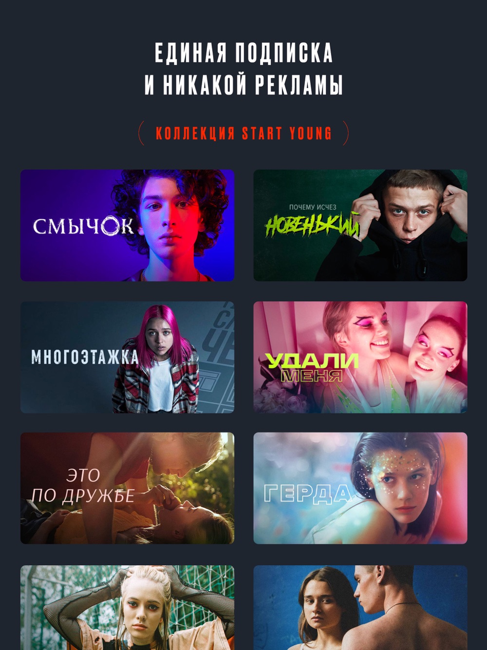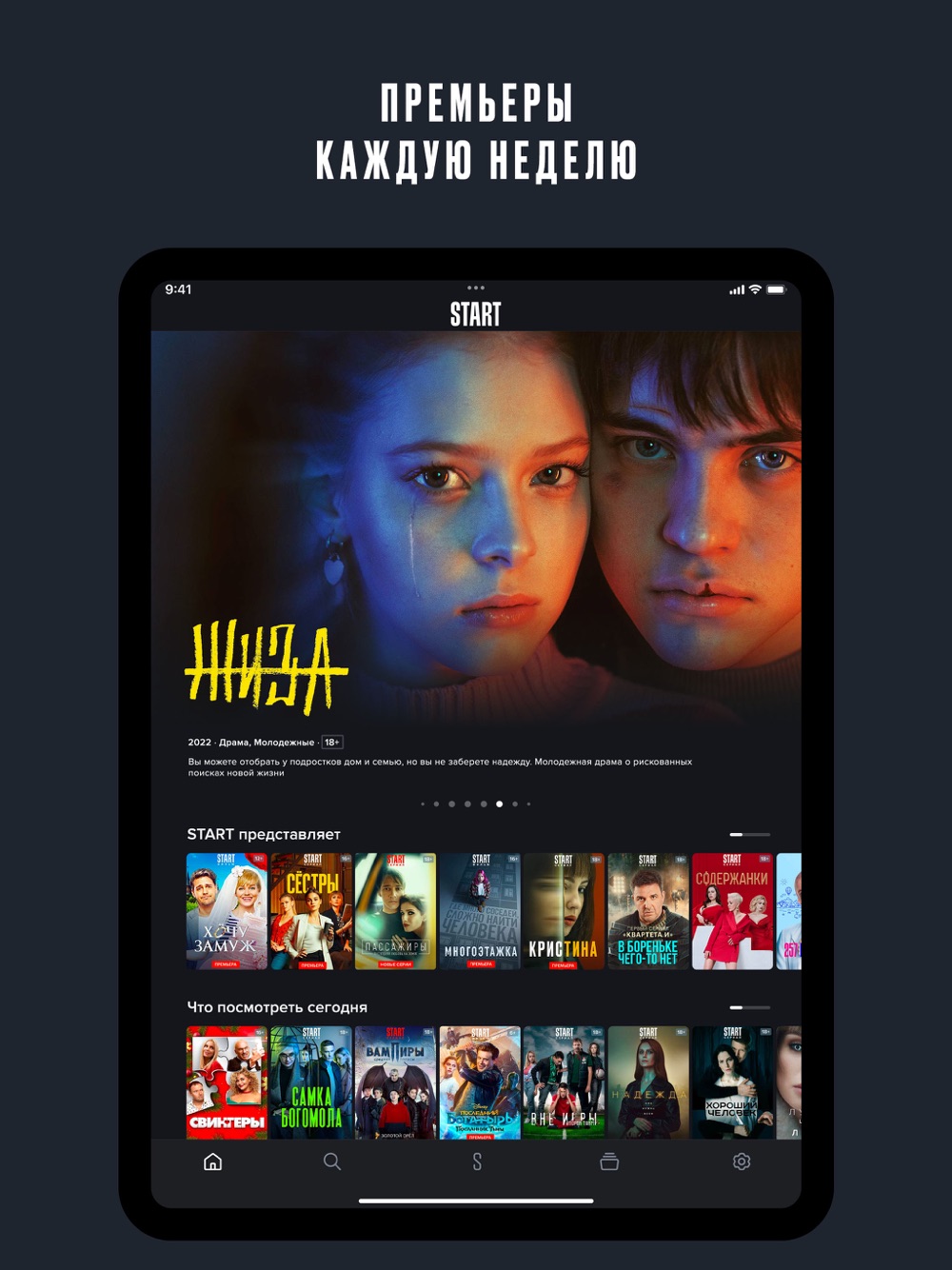 Онлайн-кинотеатр START снимает и показывает сериалы, которые регулярно возглавляют зрительские рейтинги. А ещё на START большая библиотека кино, сериалов и мультфильмов от ведущих студий мира и 170+ телеканалов онлайн — всё это в единой подписке без доплат!