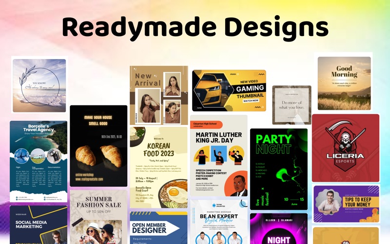 We are giving ready-made template designs. Design Maker allow you to create amazing multiple Logos, Instagram posts, stories, poster templates, and more.