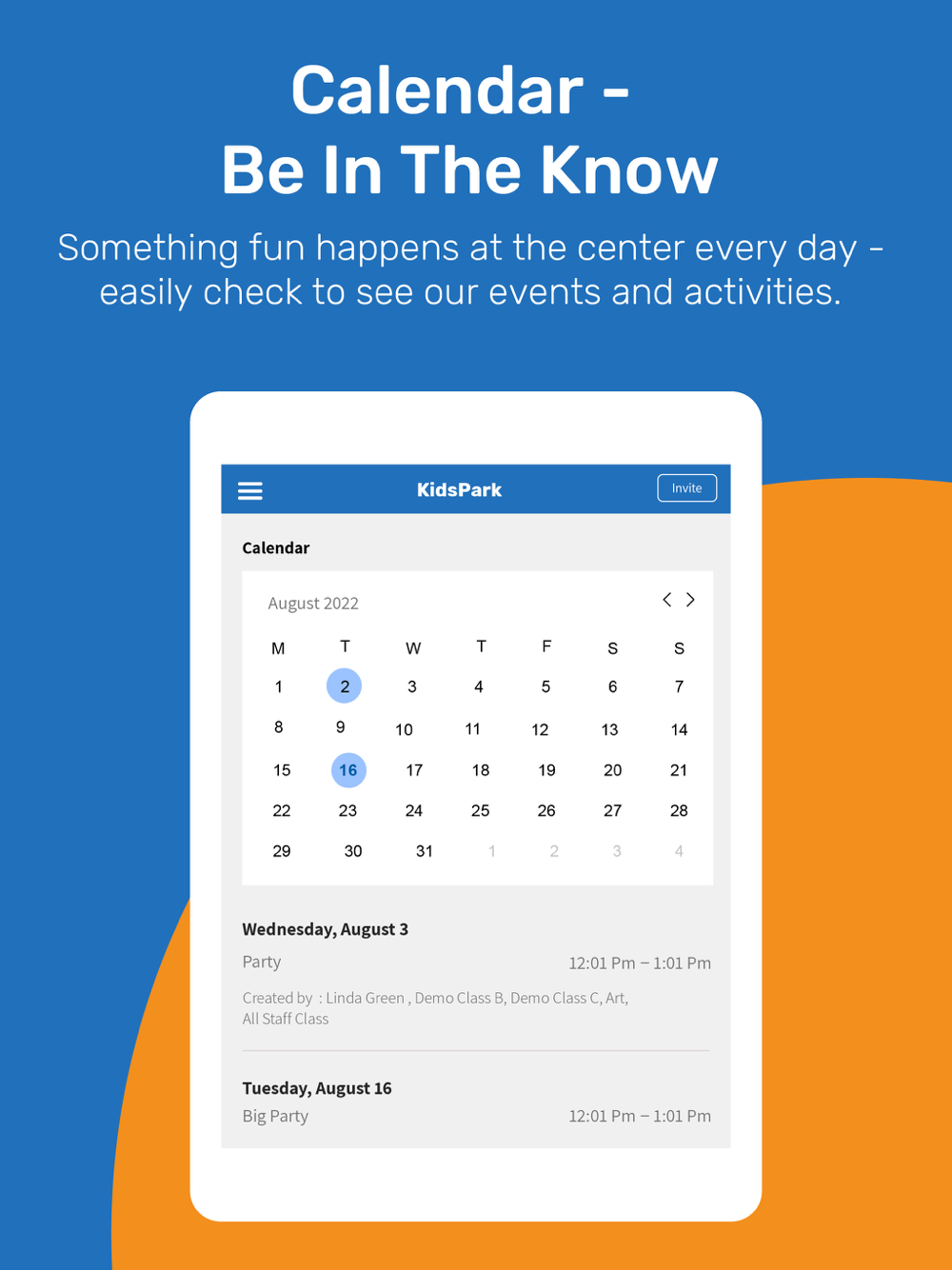Be a happy KidsPark-er! Here’s a handy Parent Helper to securely manage your visits, enable speedier check-ins/check-outs and manage your account. Never miss out with our calendar of events and real-time notifications.