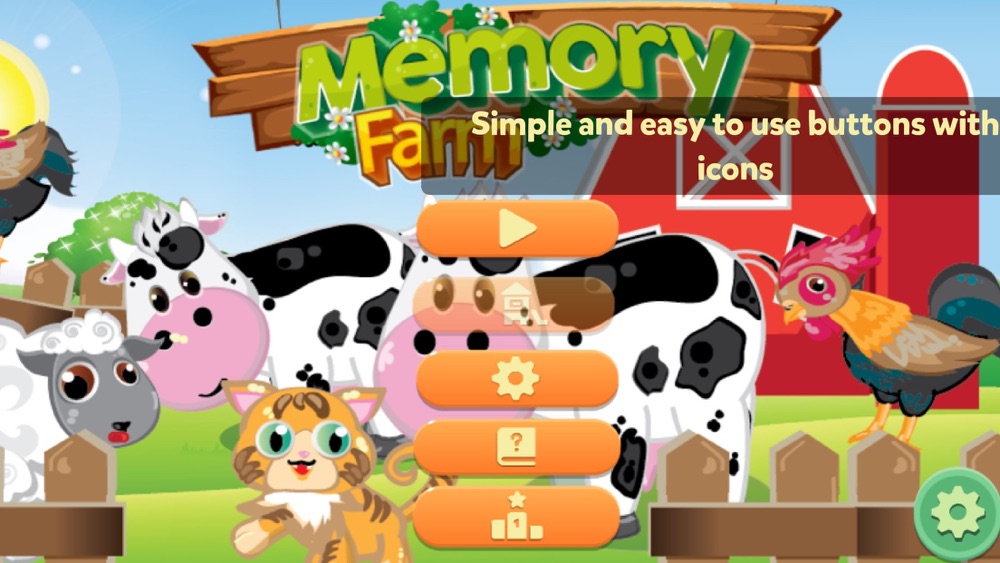 Memory Farm is back and with updated visuals and changes! Listen to the sounds of each animal then touch each animal in order to clear each level! A simple memory game with one touch controls.