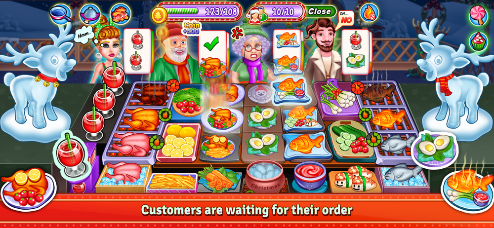 Hello Chef, get ready to become one of the best chefs in the Christmas Cooking Games. This game is quite different from other cooking games with the Christmas theme and additional challenges for you to try your excellent cooking skills. Cook delicious Christmas foods and serve the meals to your customers. You’ll love this game if you’re a fan of cooking games, then get ready for all the unique themes and Christmas theme customers and foods.