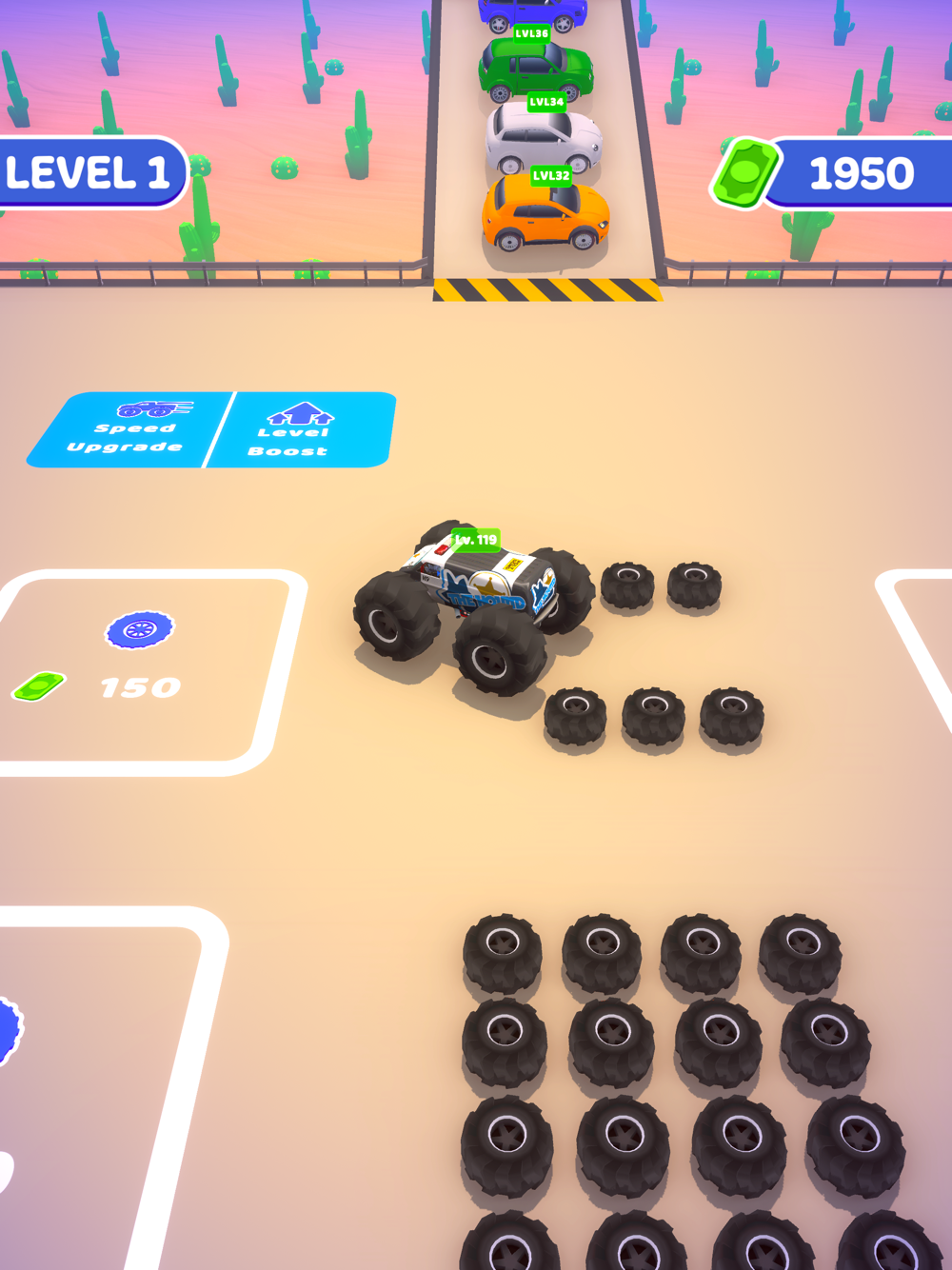 Vehicles lined up in rows are waiting to be smashed. With our monster truck we can crush more vehicles by collecting more tires. Getting to the amazing monster truck at the end is not easy. The more tires we collect, the further you can go. Try one’s luck but luck won't be enough.