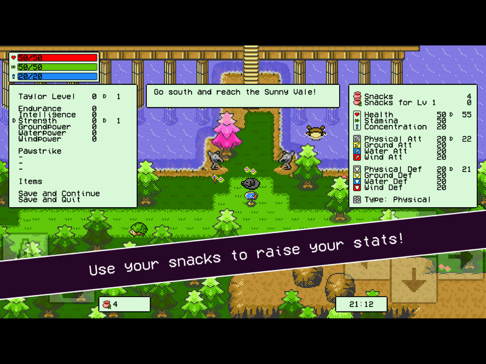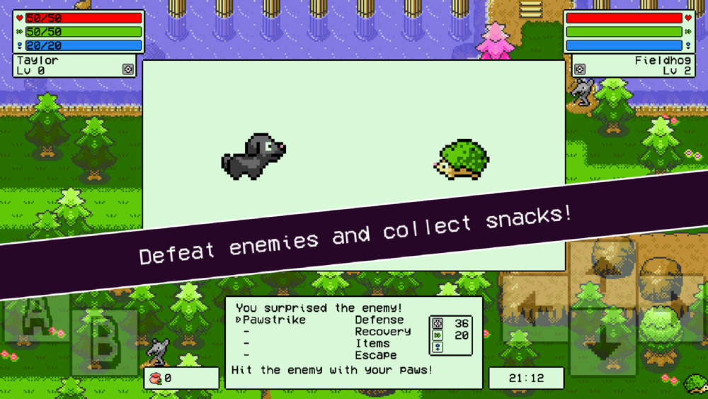 You play as Taylor the dog, who has lost his pack and must find it again. With the help of a mysterious NPC you travel across the land to find a way back to your pack. You collect snacks by defeating animals and with these snacks you can raise your stats, when you visit one of the gold cups. These gold cups serve as checkpoints and are always worth a visit.
