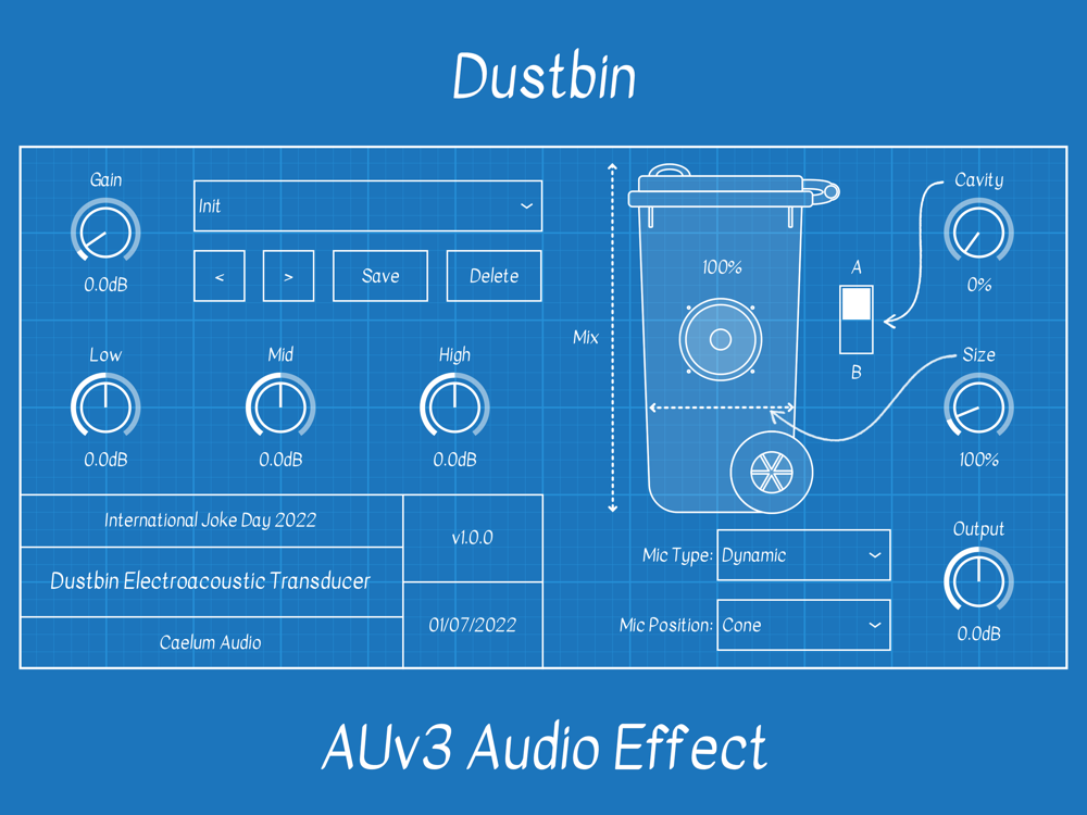 Pick your way through the impulse responses taken from the Bin’s cavity and built-in speaker. Transform your Garage into Garbage, Rap into Scrap, Pop into Slop, Punk into Junk, and New Age into Sewage.