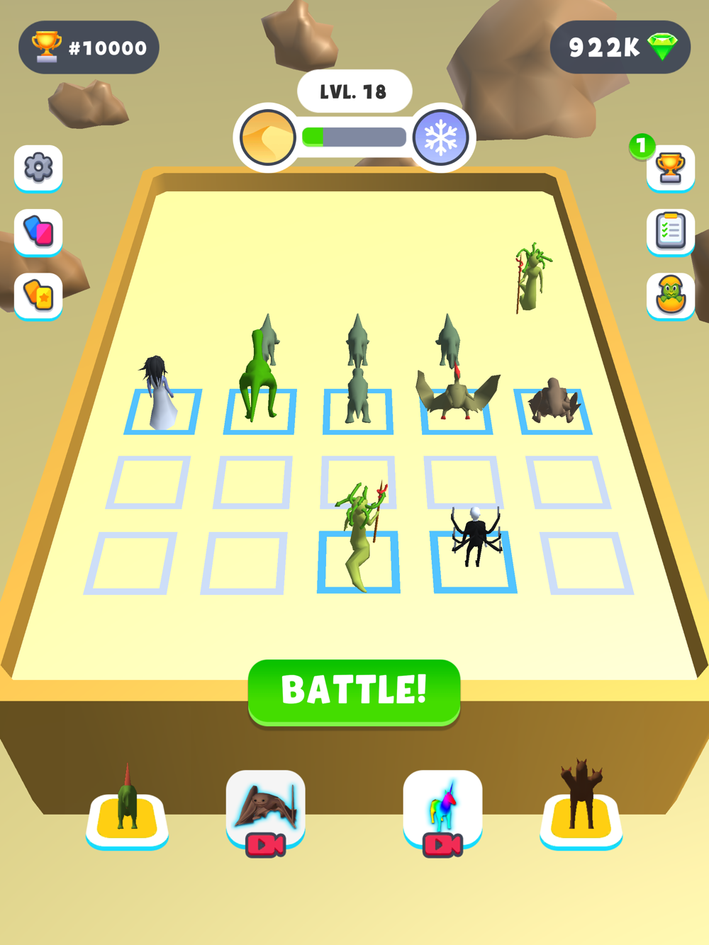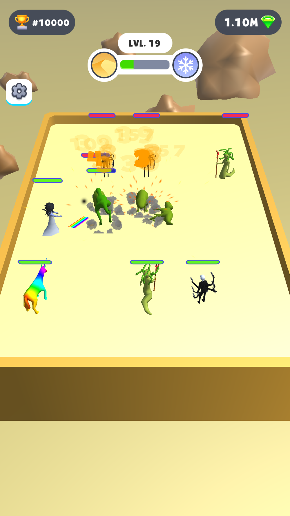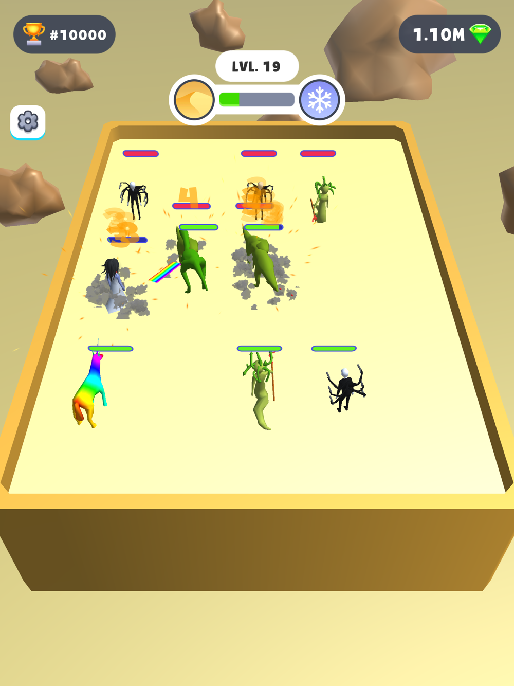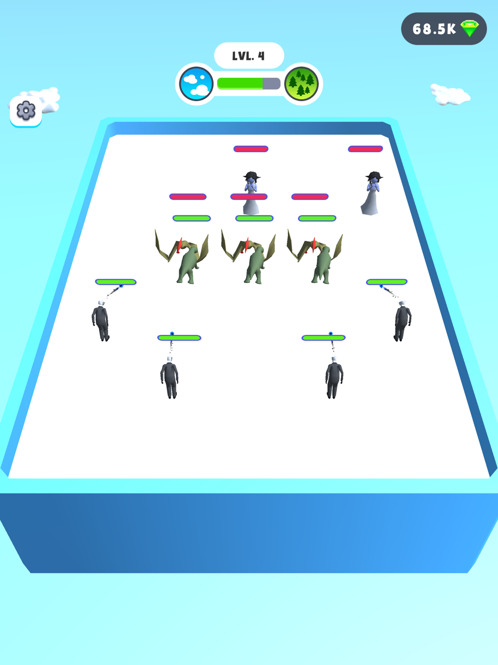 Merge Master Mix Monster is a merge fight between monsters and dinosaurs. Use strategy to combine the dinosaurs with monsters to fight battle. Your enemies are monsters or other dinosaurs. Merge monsters and get stronger ones for battles with the enemy. To become a merge master, upgrade your army with different strategies to merge monsters.