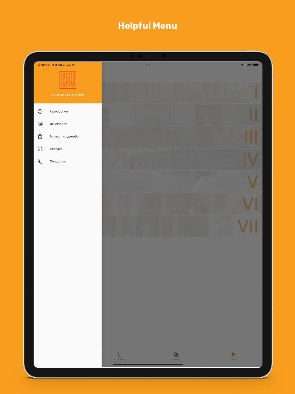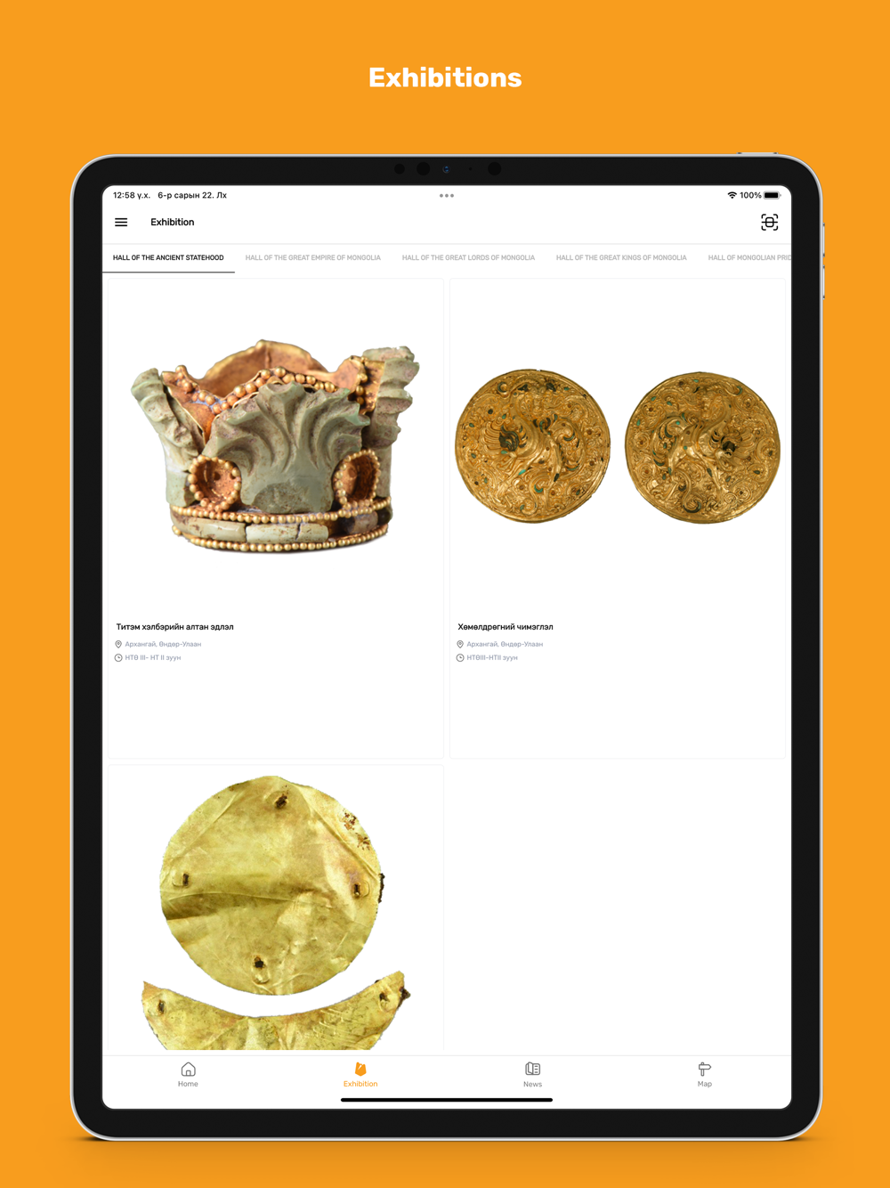 Chinggis Khan Museum is historical museum which display over 6,000 exhibits and artifacts. The 5,741 pieces out of the abovementioned 5,927 domestic exhibits are being brought for public display from 27 organizations inside the country, including state or local owned museums, libraries, archives, academic and educational institutions and the treasury fund. In addition, 154 new exhibits are being manufactured, 18 exhibits are being made as copies of memorial heritage items, and another 10 exhibits of scale models were manufactured as well.
