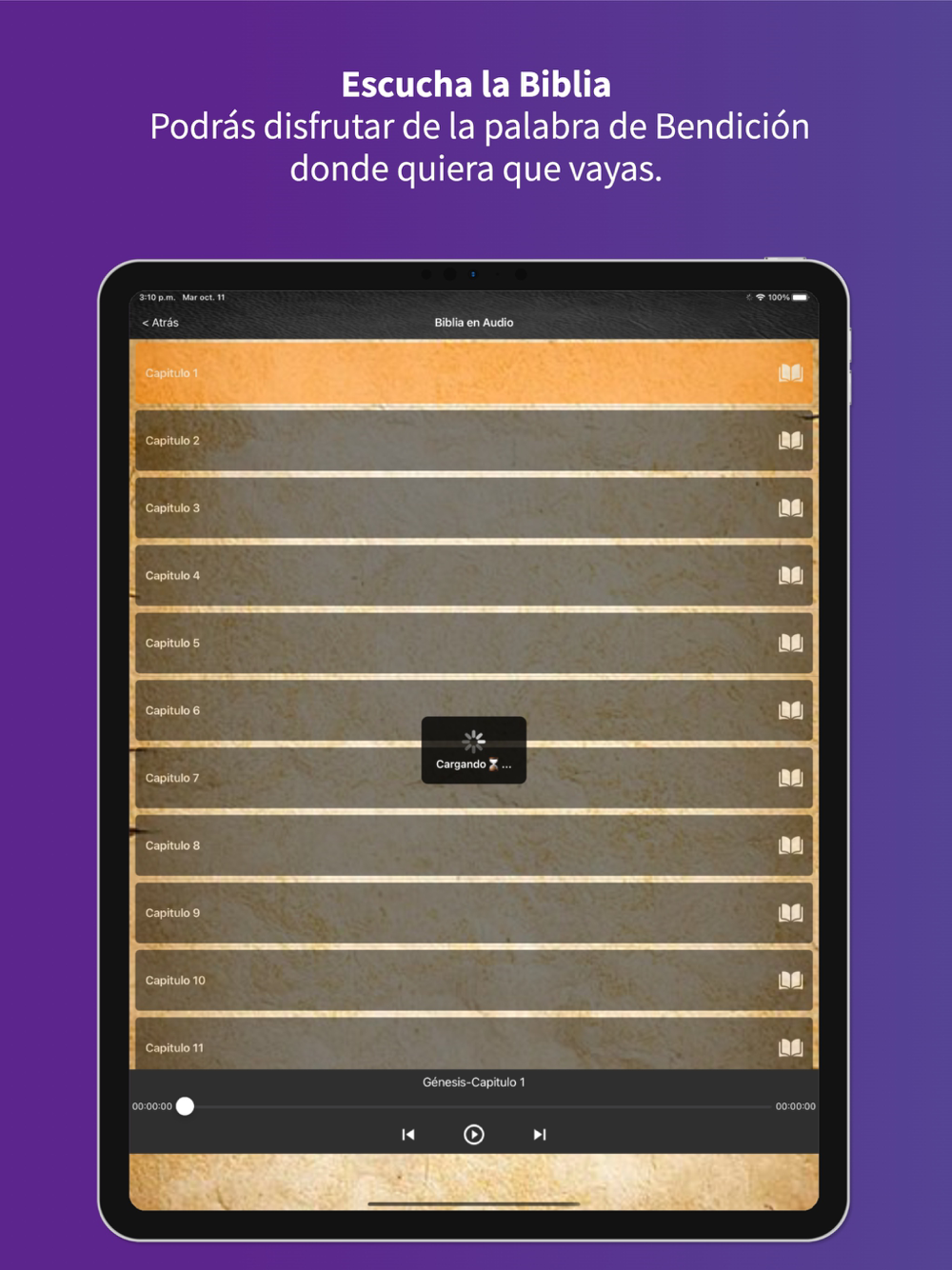 En esta aplicación contiene la Biblia Reina-Valera con los 66 libros organizadas por nuevo testamento y viejo testamento.
