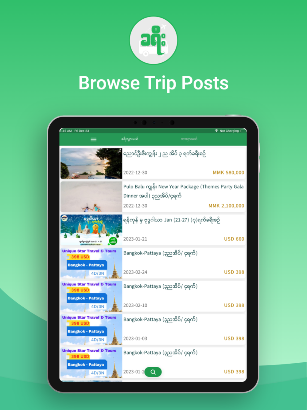 In our app, we have latest updates of the new trips and tour packages by popular Tour agencies on Facebook and Car Rental information from popular car rental services and individuals.