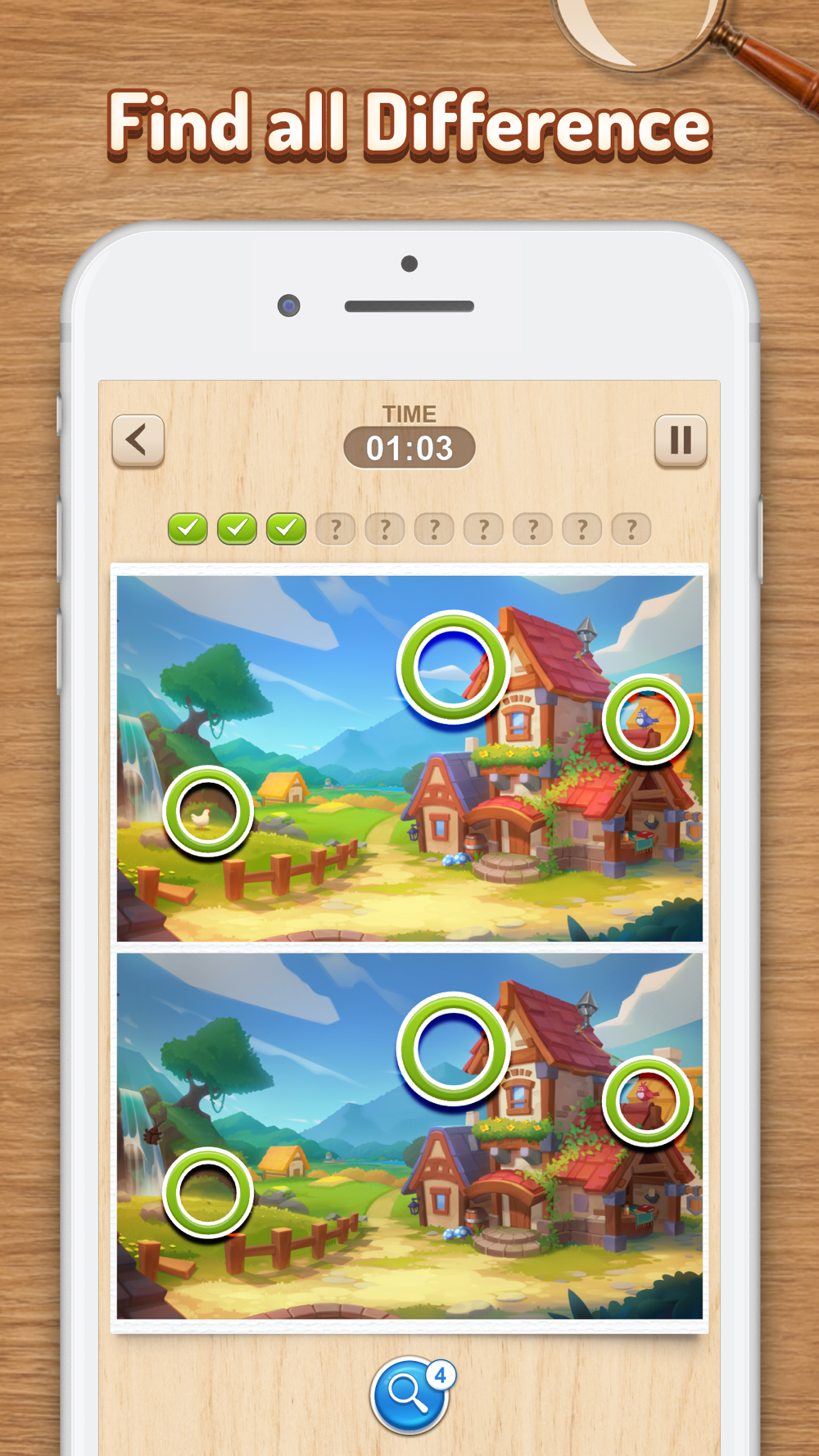 -The game is easy yet challenging! Seamless UI, beautiful pictures, and wisely designed levels will let you enjoy playing, not suffering, and struggling. A good find differences game to train your brain and enjoy the gameplay.