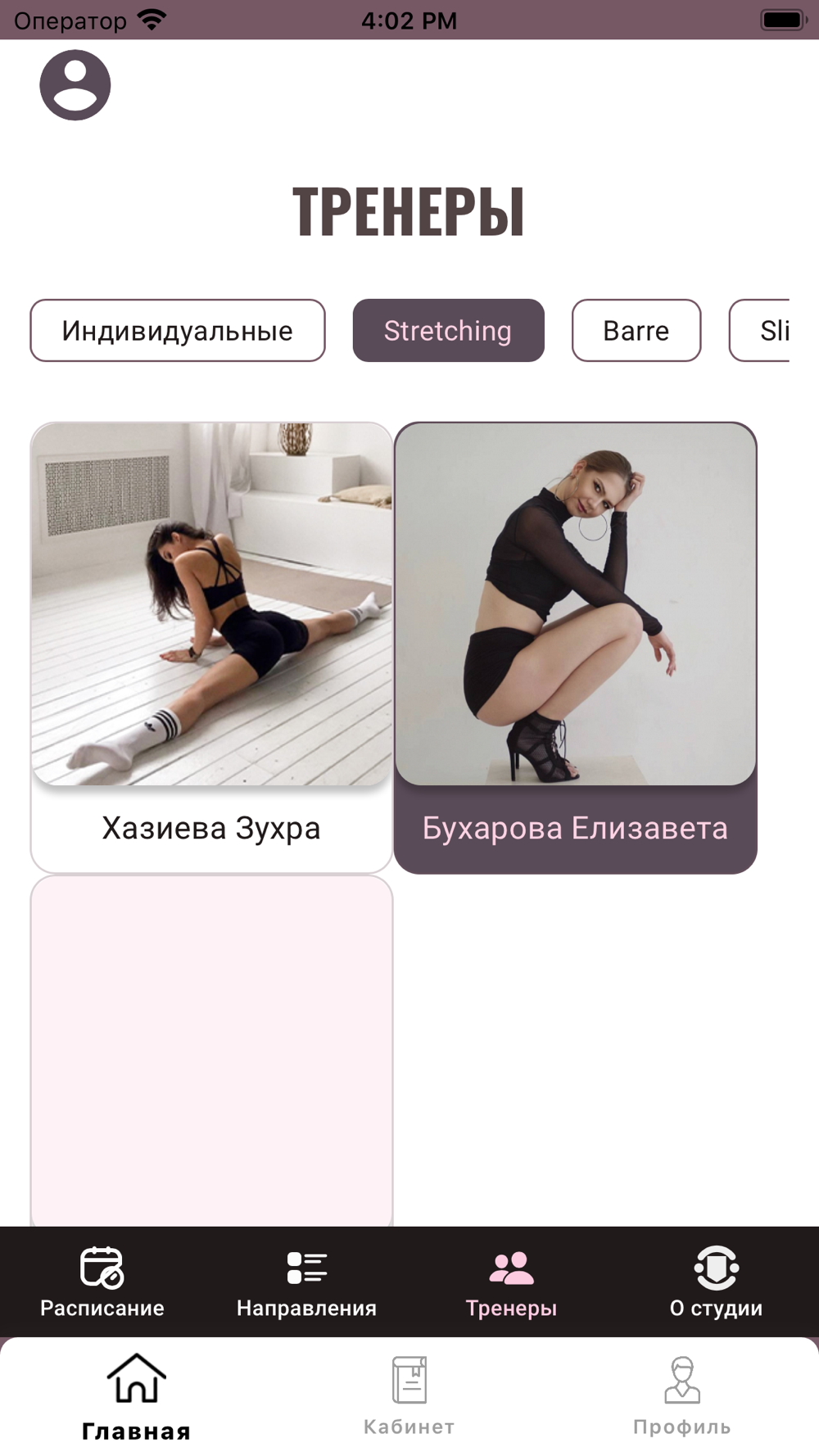 Приложение для записи на занятия в студию растяжки Dream Stretch