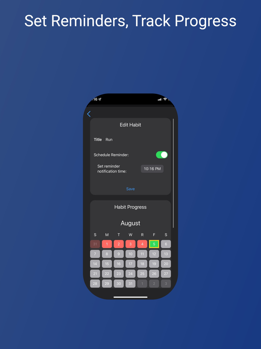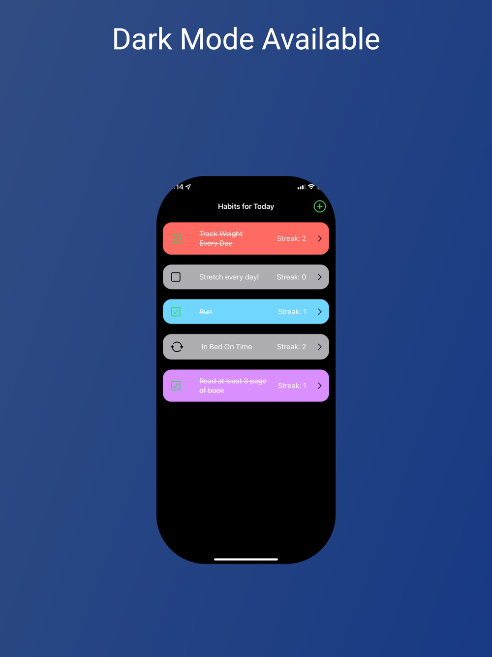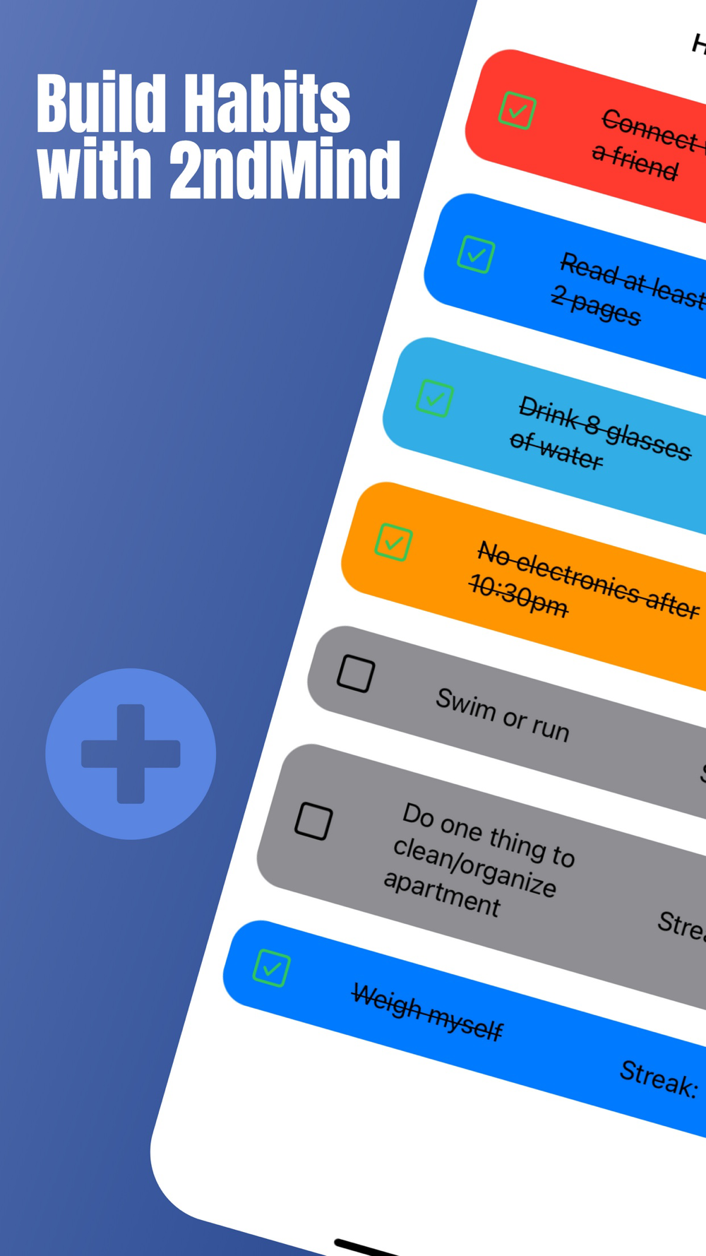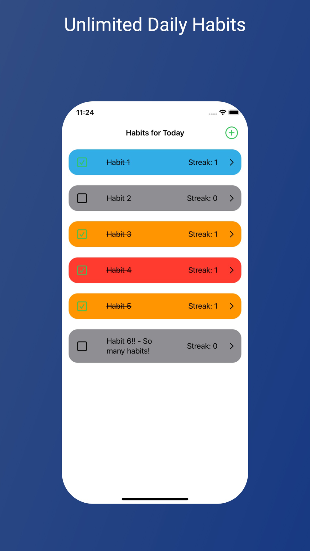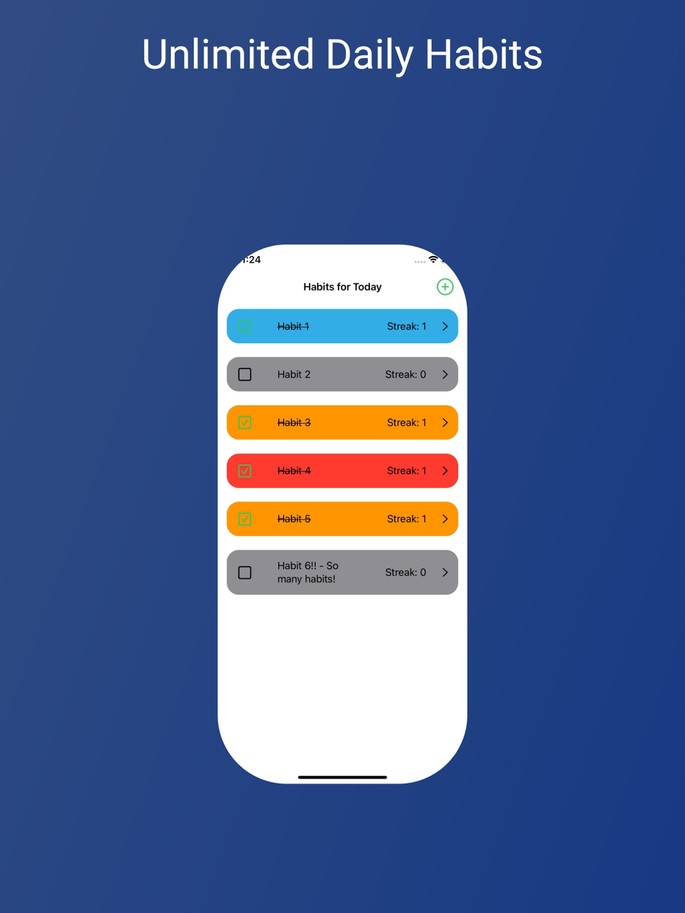 Track all your habits in one place! Unlimited daily habits! Set reminders for your habits and easily view your streaks. Track your longer-term progress with our monthly calendar view.