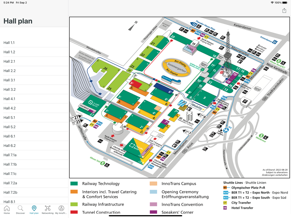The InnoTrans app is your smart companion for your visit to the trade fair. In the free InnoTrans app, you will find exhibitor and product information, a detailed program overview and interactive hall plans.