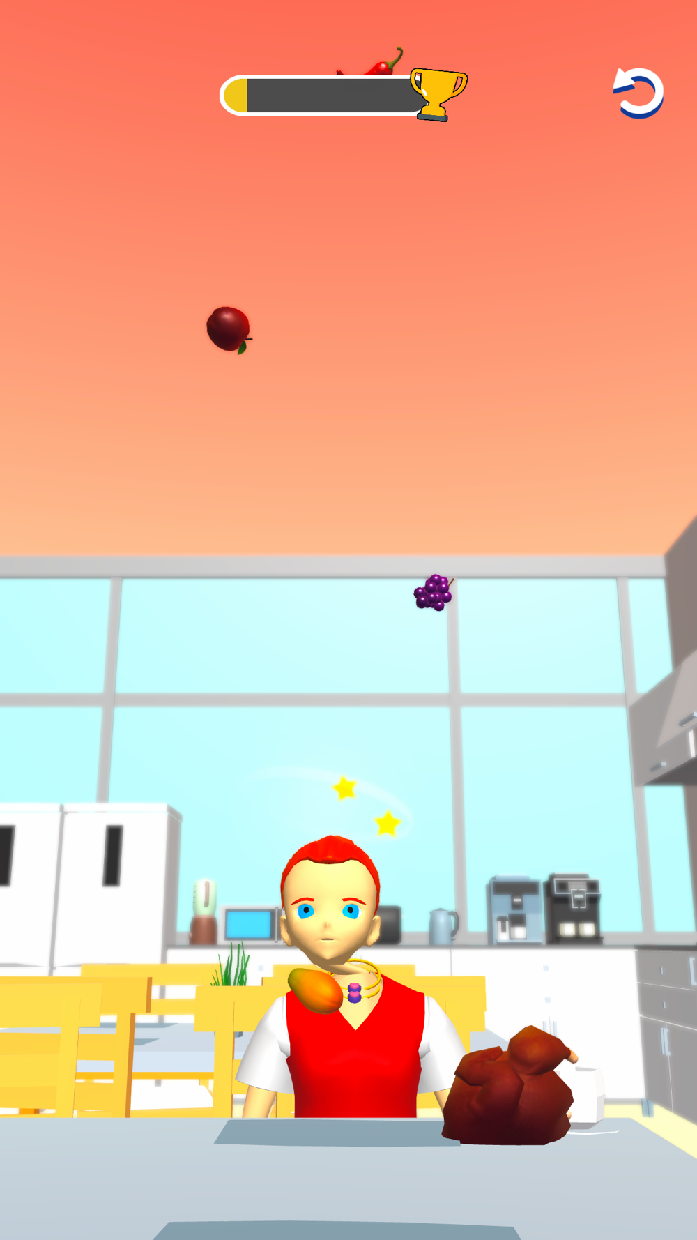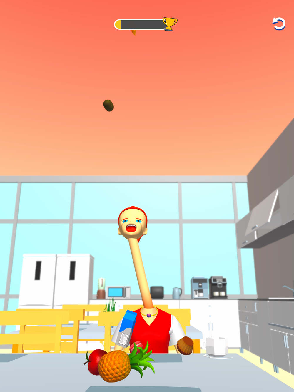 Collect the food by moving your head. Be careful not to be shaken by large foods. Open your mouth more by collecting necklaces and eat larger food quickly.