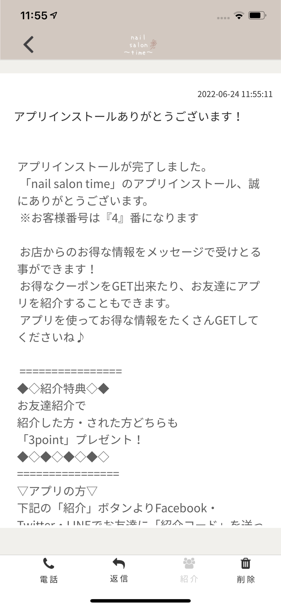 timeのアプリをSNSを通じてお友達に紹介する事ができます。