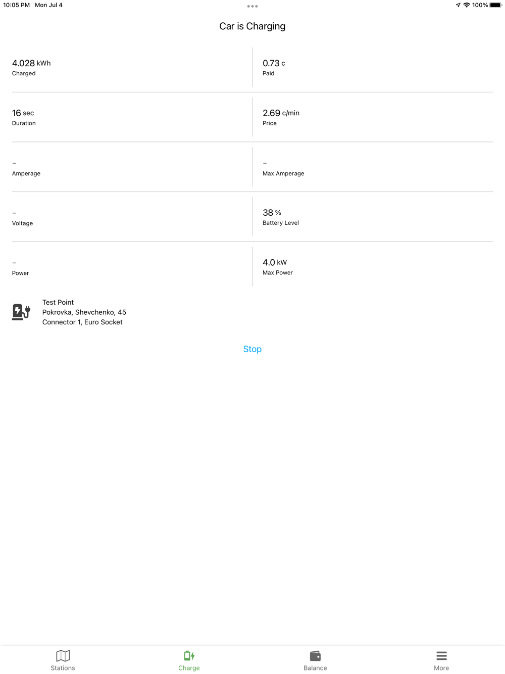 - начать зарядку и остановить зарядку, смотреть прогресс