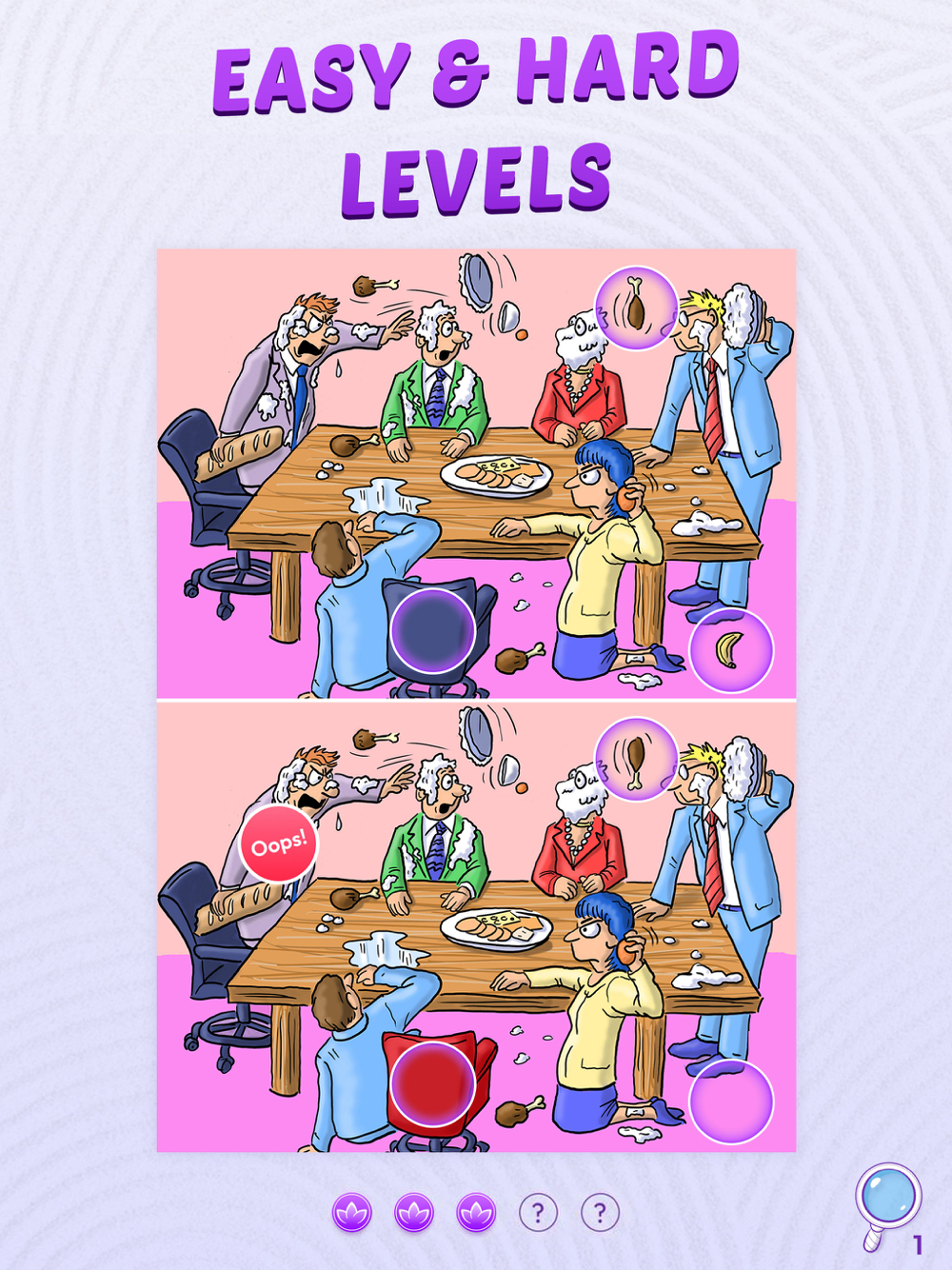 It is really easy to play! Compare two pictures, concentrate on tiny details, tap to differences when you spot it.