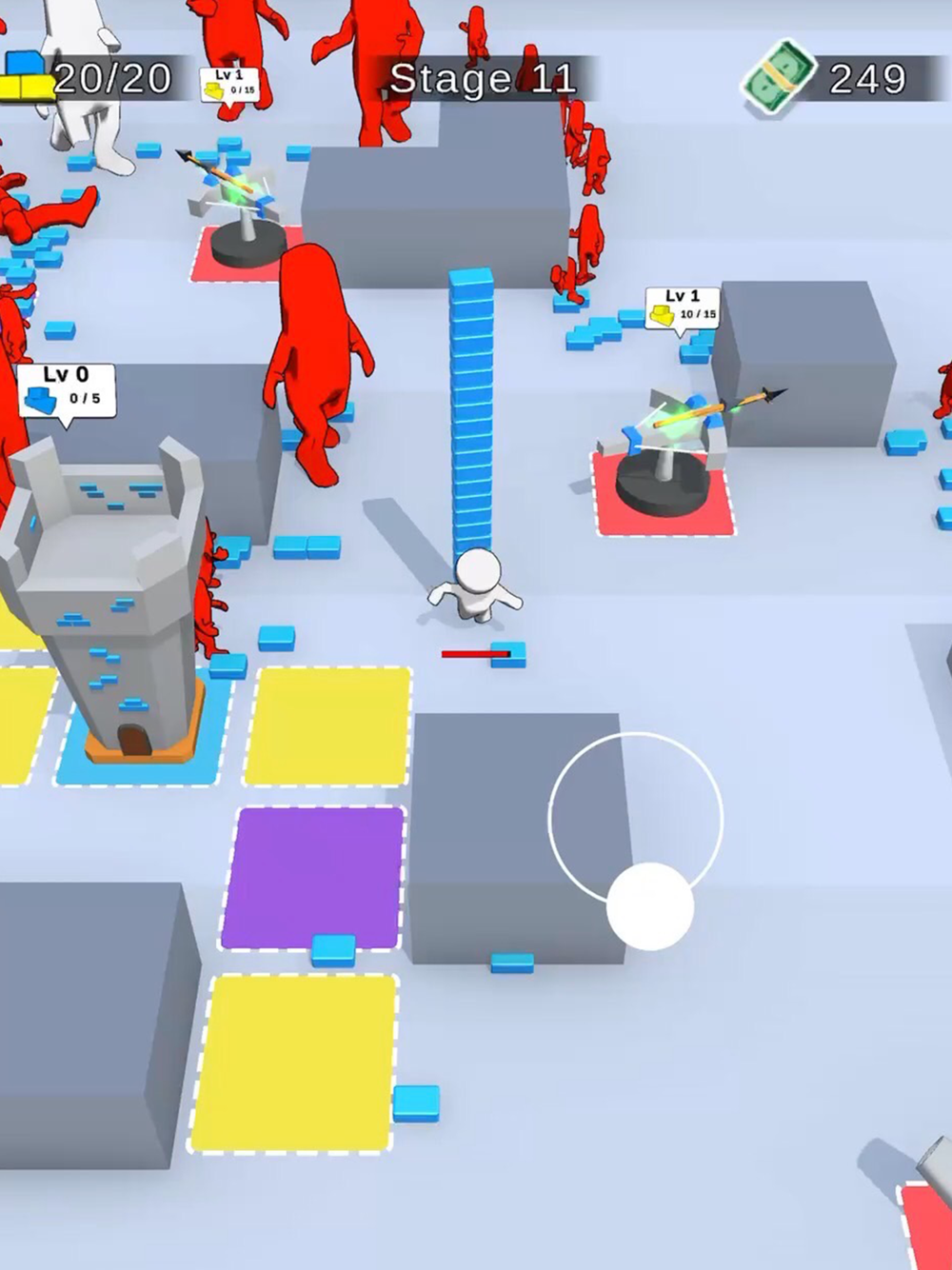 Many enemy approach the man in castle and tower. we must get more brick and build weapons. This is war.