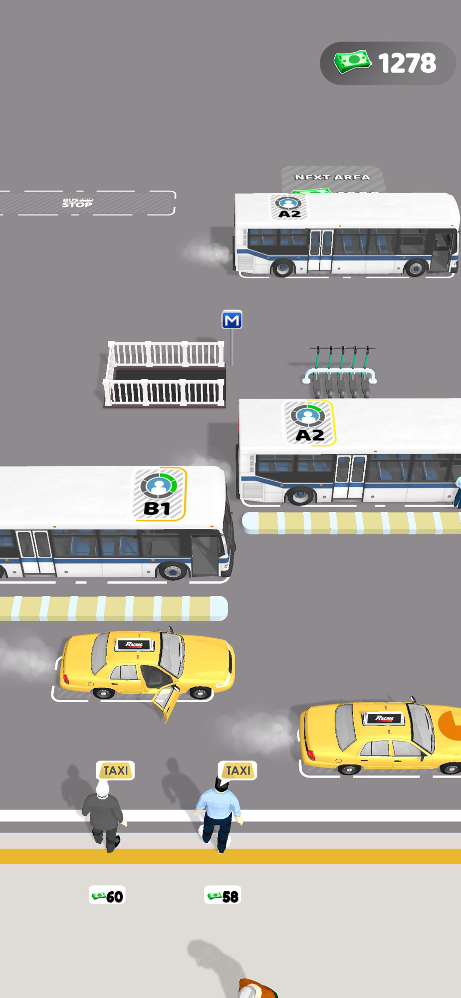 As you level up, you will have different transportation types in this passenger management game.