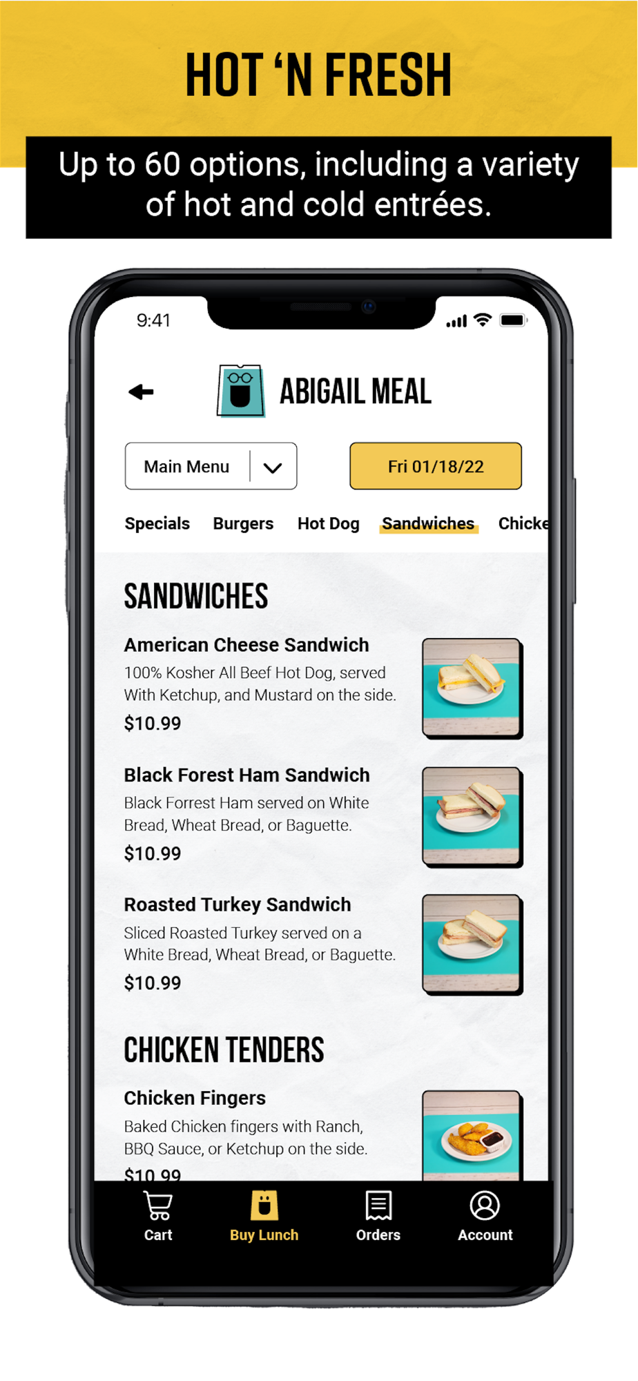 - Up to 60 meal options, including a variety of hot and cold entrées