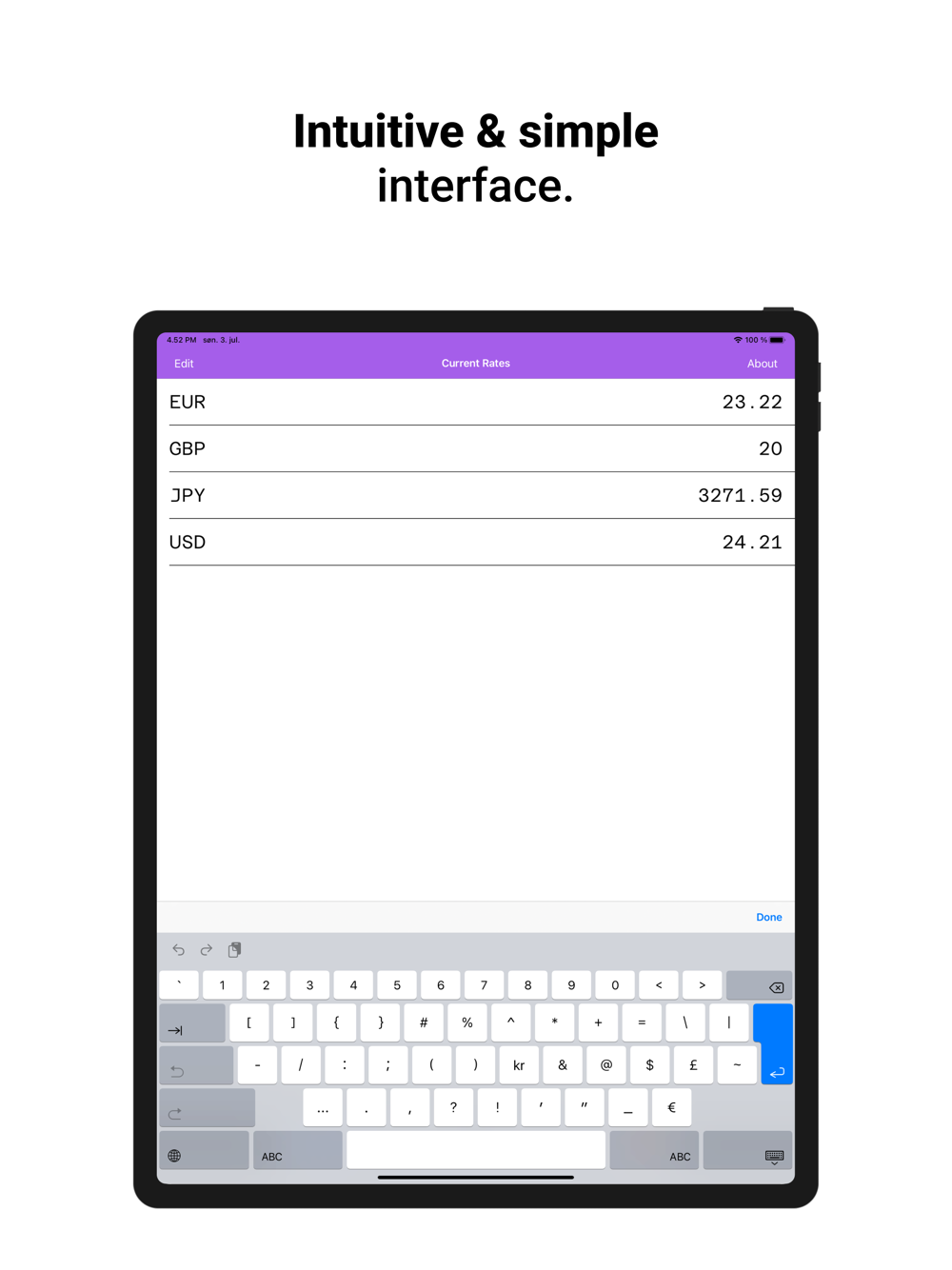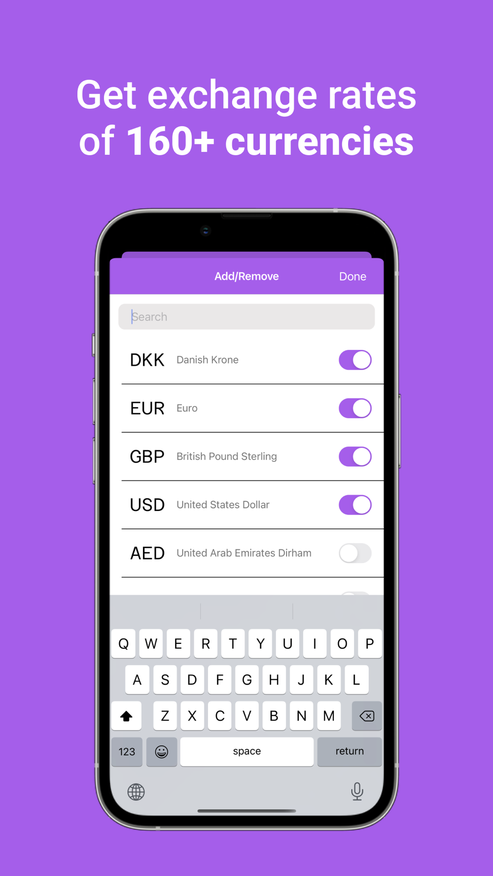 You’ll get access to over 160 currencies from around the globe. Add your favorite currencies to the home screen to guarantee fast & easy conversion. We support conversion between countless rates, including EURO EUR, British Pound GBP, United States Dollar USD, and many more. We also convert Bitcoin BTC.