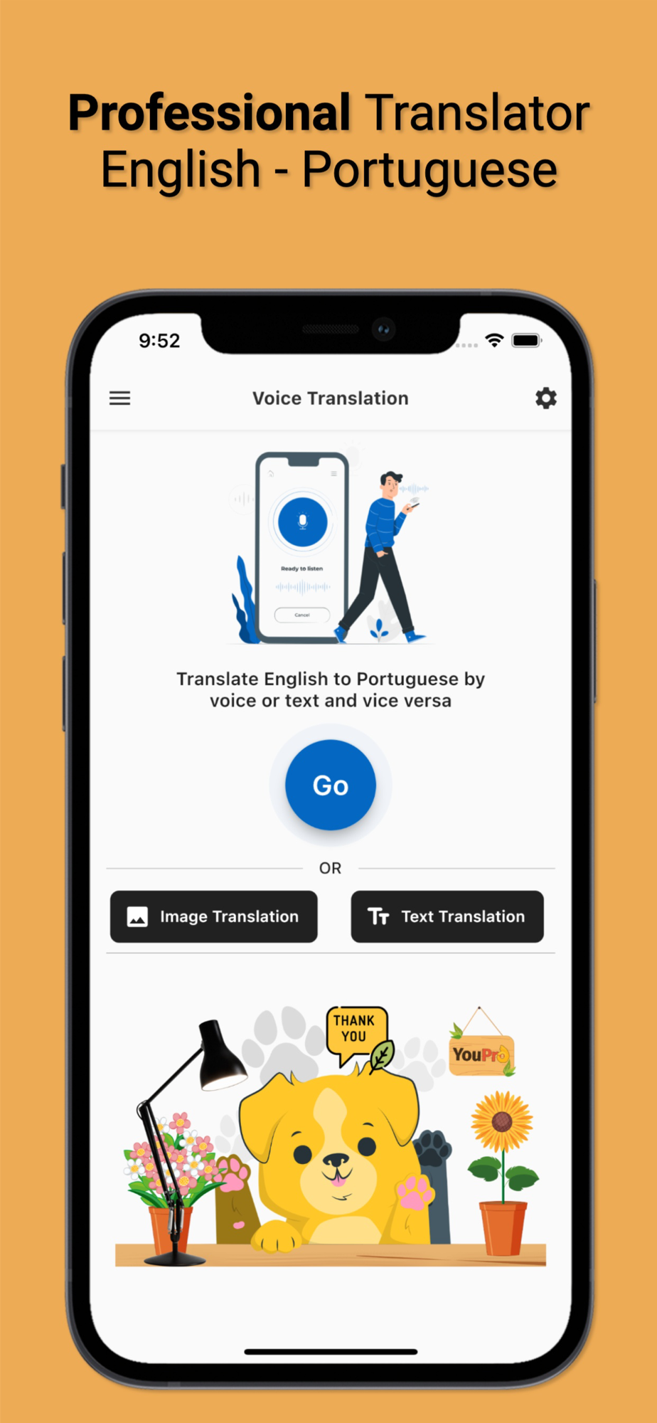 English to Portuguese Application is a voice, text and image translation application from English to Portuguese or Portuguese to English, very convenient and easy to use, useful for users.This English to Portuguese Translator allows you to translate all documents, voice, images with the language is English or Portuguese. This application is a product of YouPro.