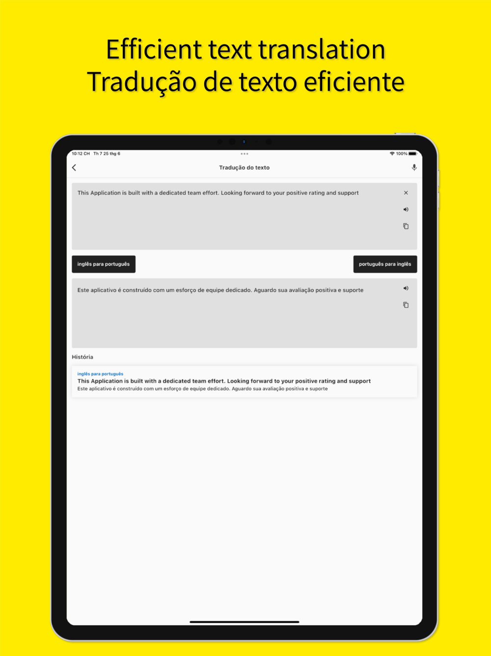 Real-time English or Portuguese text translation for phrases and words, voice to text translation