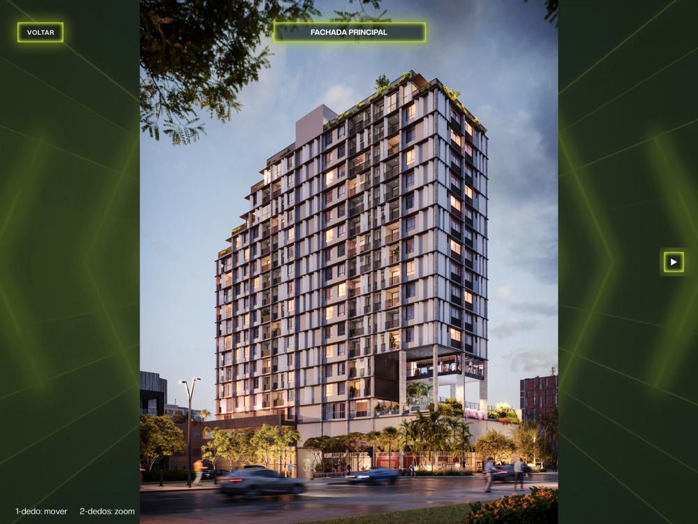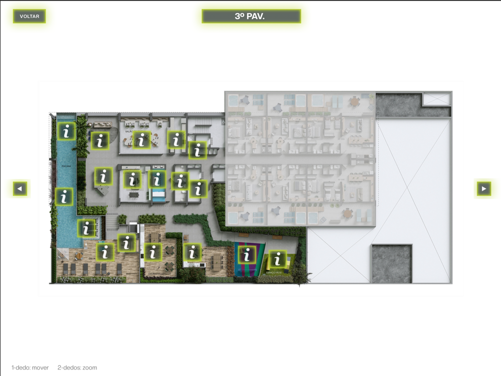Explore todo conteúdo sobre o empreendimento e interaja com os ambientes e áreas de lazer.