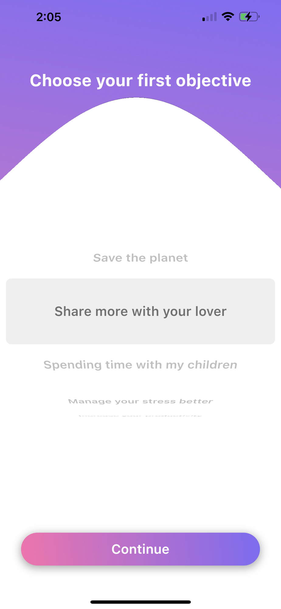 Select your objective in the growing list :