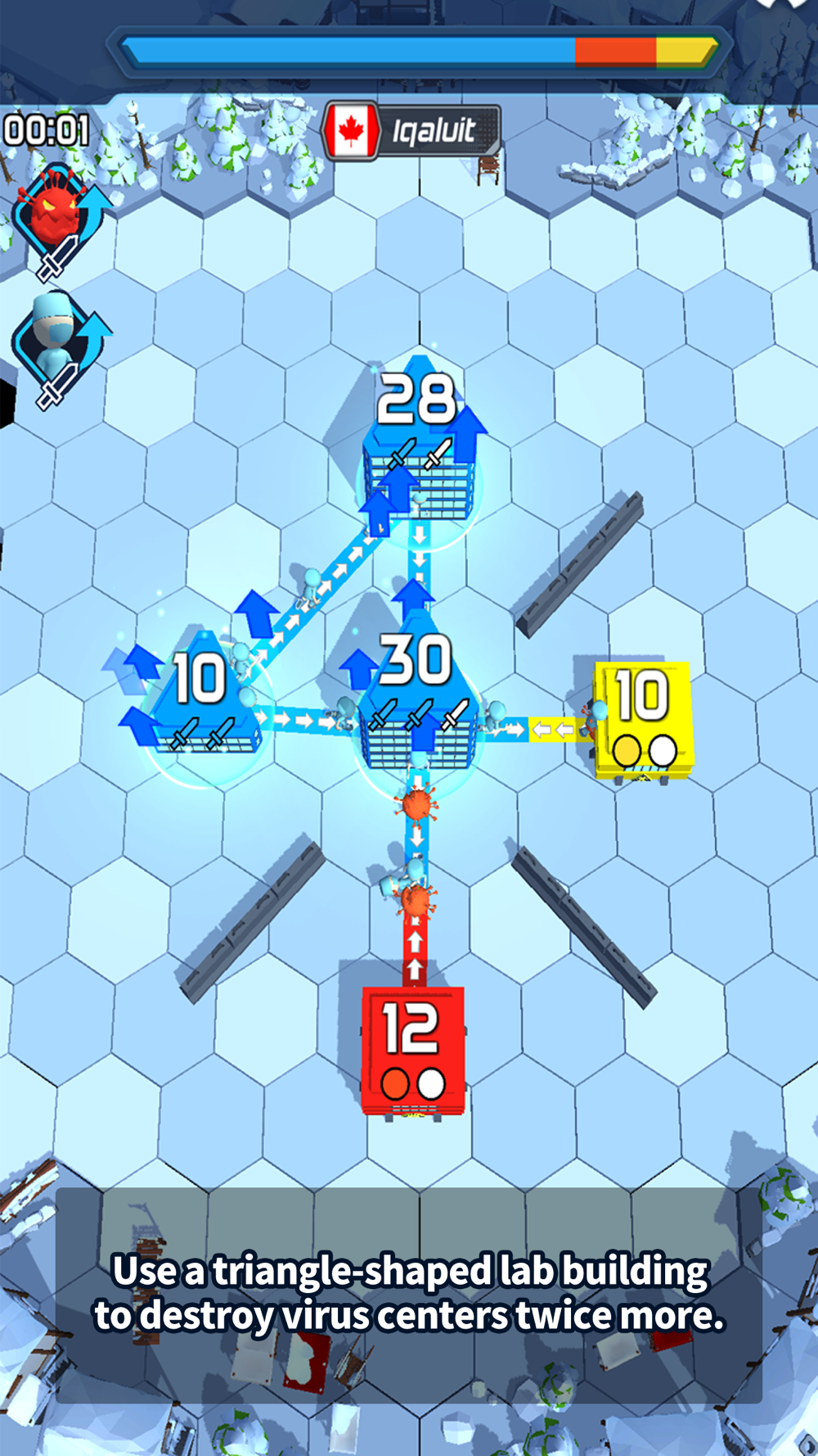 Occupy the virus research center with your vaccine to win the game.