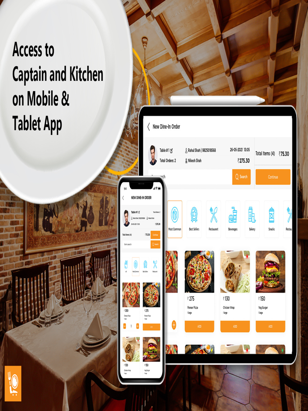Lokaly Dine In Application allows Restaurant/ Eateries to manage the Orders digitally. The app is available for Captain and Kitchen. It allows for digital KOT (Kitchen Order Ticket) as well as printing the KOT. The order processing is seamlessly integrated with the Lokaly Customer App to allow the customer see their Order details review them as well. Application allows for various features like Guest or Existing Customer Ordering, Various Item View (List, Grid), Multiple Sub-Orders, Adding Notes, Adding Tip, Print JOT, Print Bill etc.