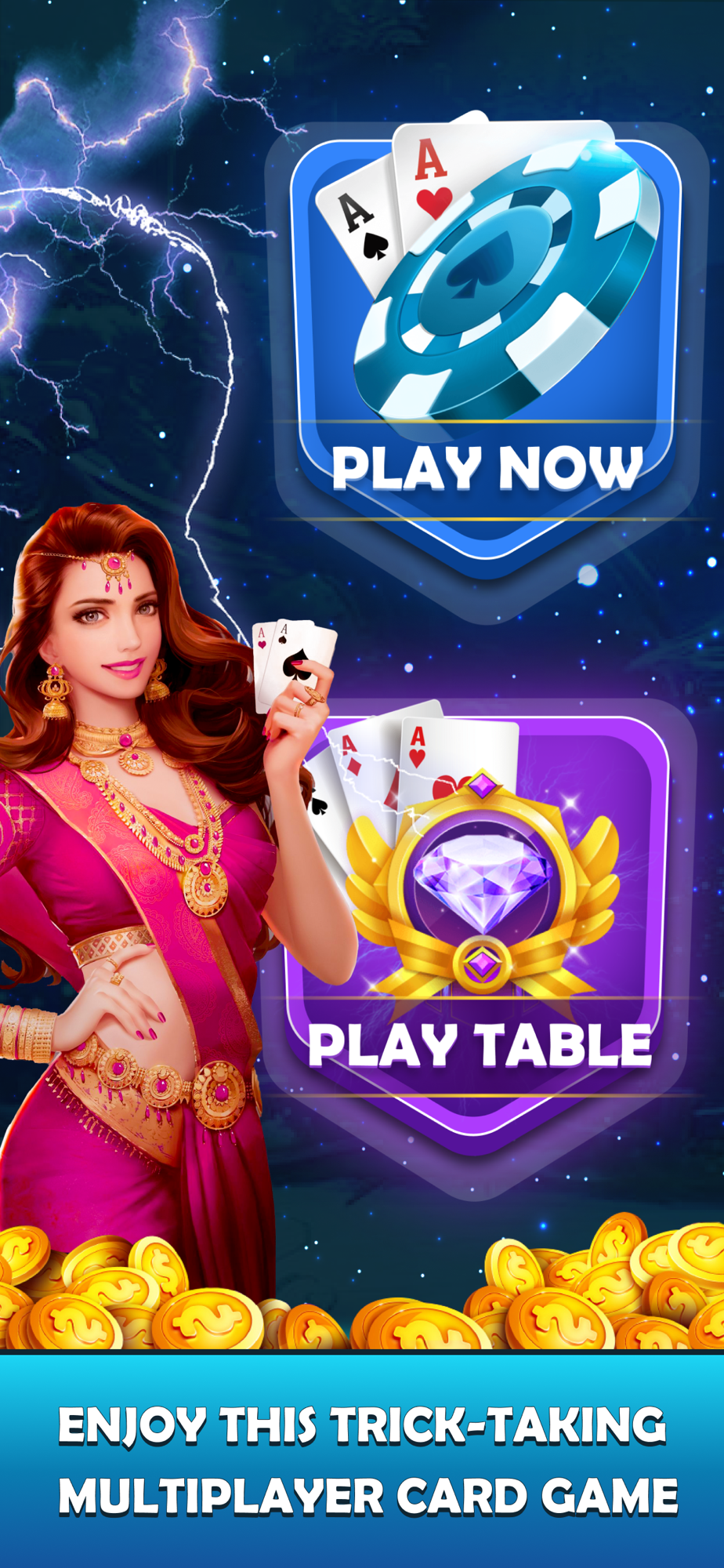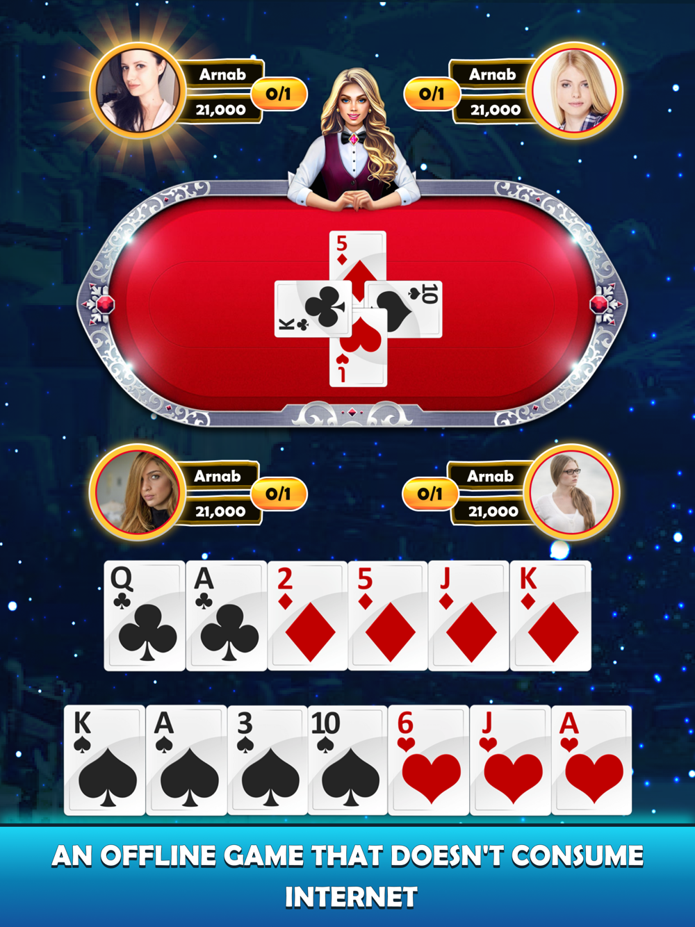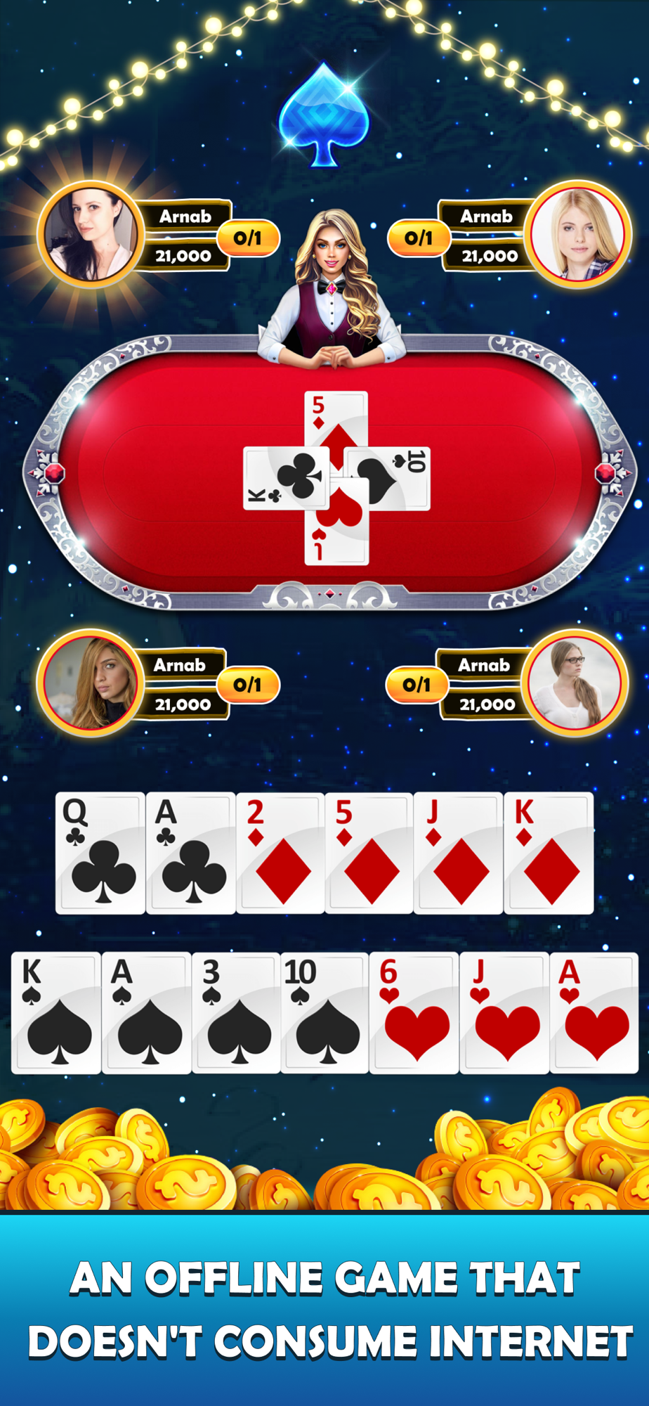 This game is played as per rounds. Every round has different cards with different trump suits from Heart, Spades, Diamonds and clubs. 4 players can play this game with 13 rounds compulsory to complete the game.