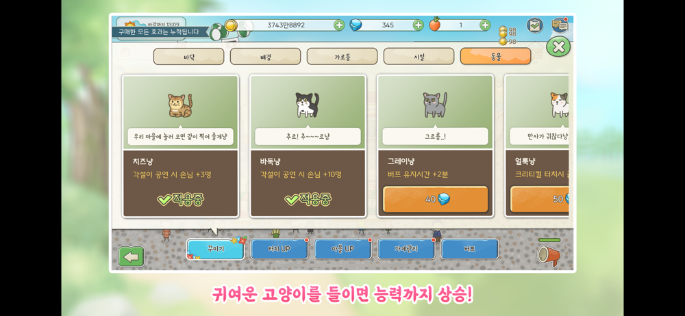 - 도깨비 놀이터 추가 도깨비 놀이터에서 빙고게임을 즐겨보세요.(꾸미기 -> 시설 -> 도깨비놀이터 구매 후 이용가능)