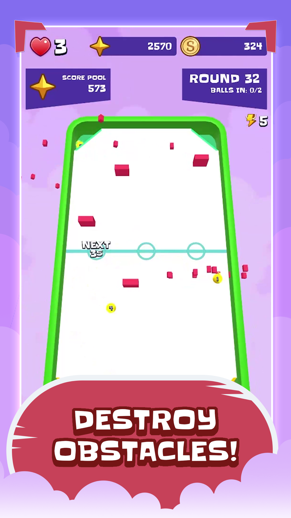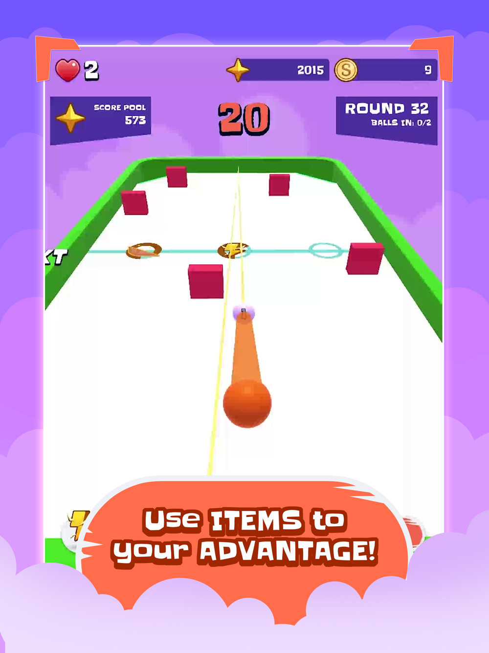 Your objective is to score by hitting the balls inside the opposite pockets. If they get inside your side pockets, then score is subtracted. To take a shot, wait until balls hit your wall and take action before they pass midfield. Watch out for obstacles and debuffers that will make your life difficult. Snookey has no end if you manage to keep going!