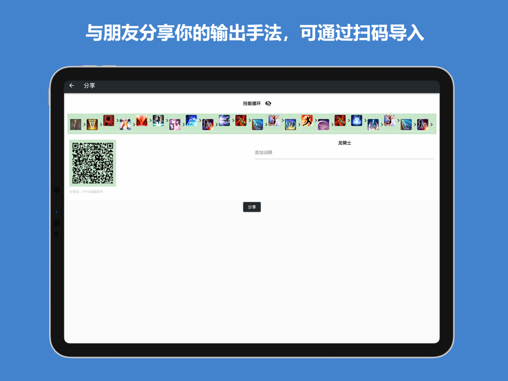 一个ff14技能循环编辑器,可以编写,保存,分享你的输出手法,也可以扫码获取大神的输出手法