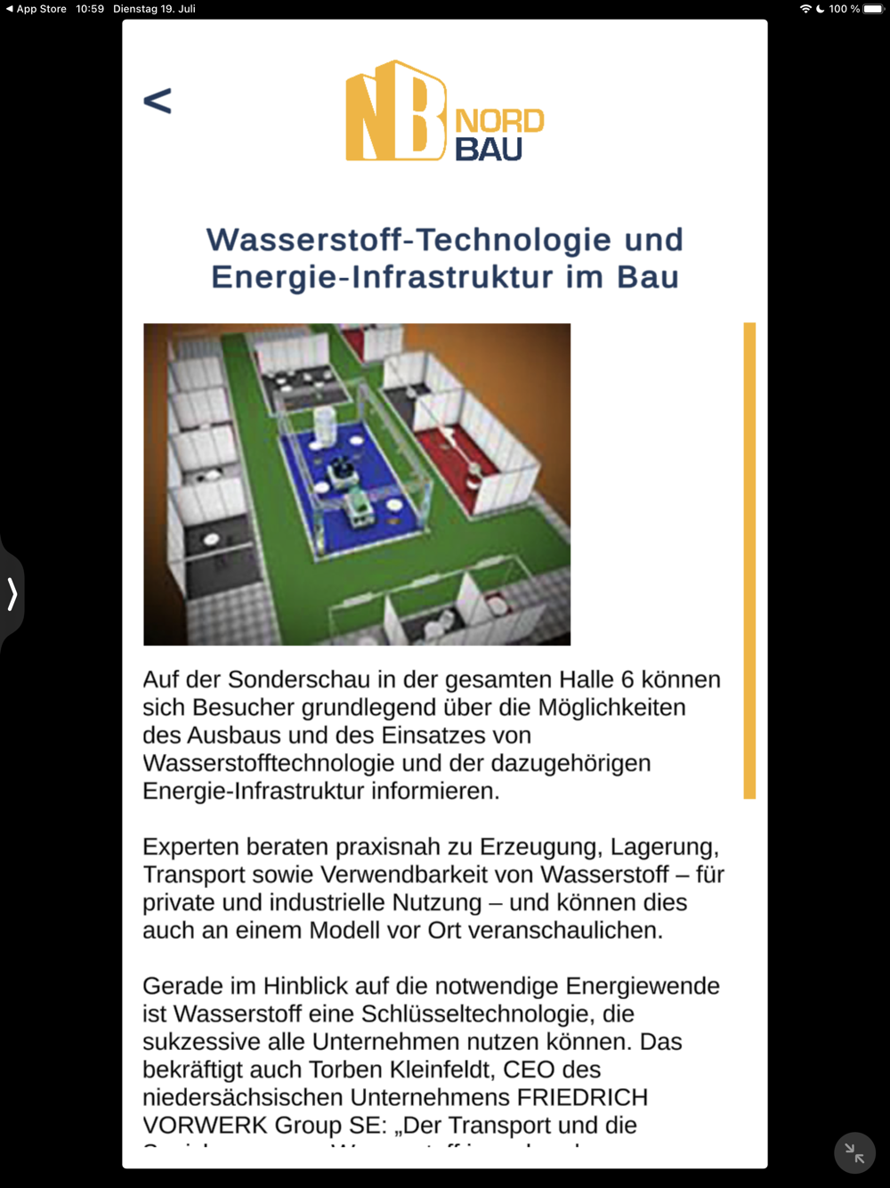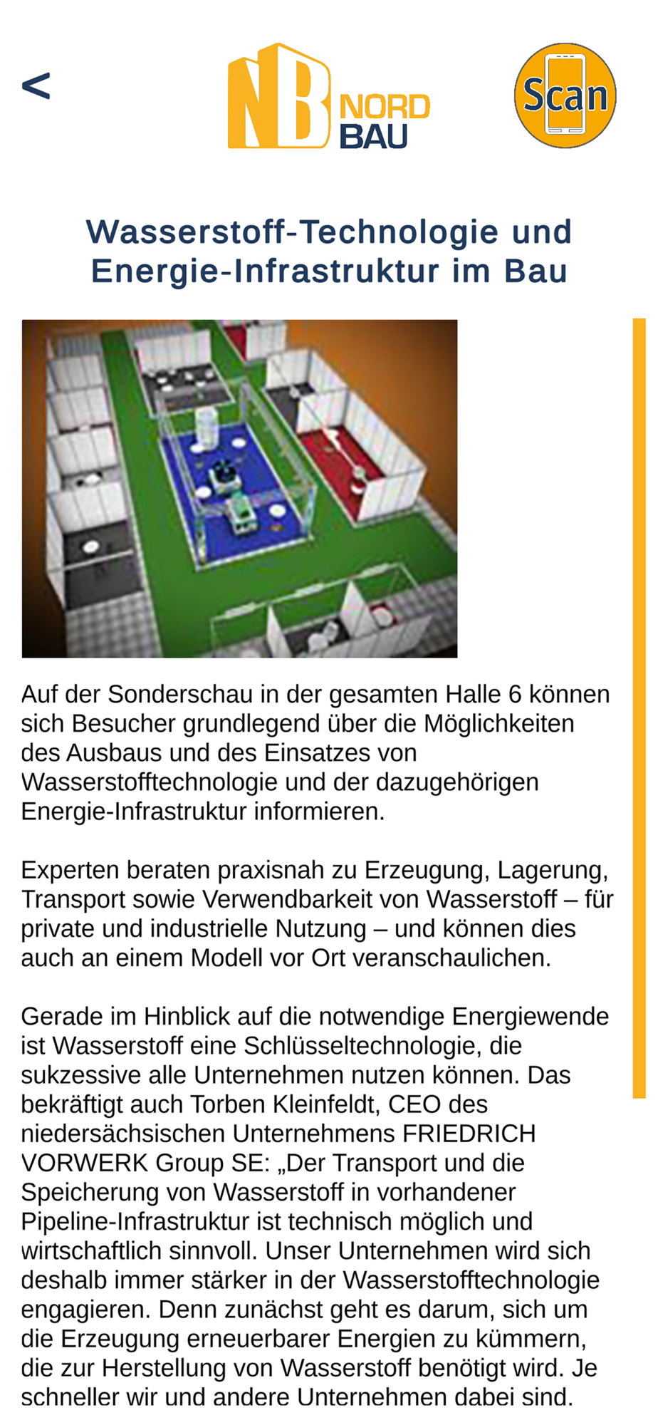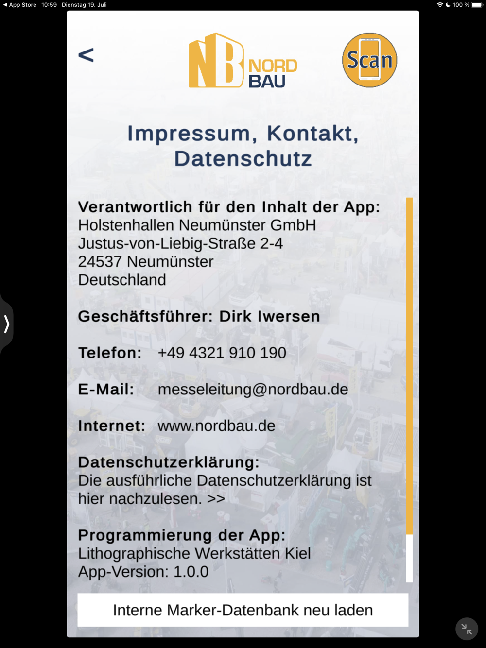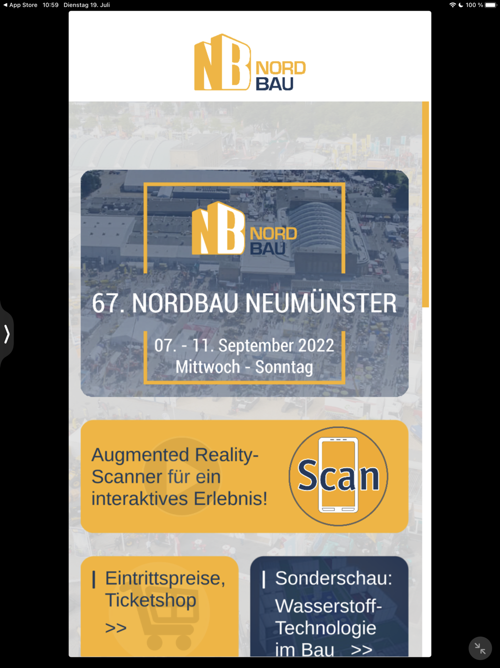 Die NORDBAU-App ist die Messe-App für die Nordbau in den Holstenhallen Neumünster. Der integrierte Augmented Reality Scanner wird die Druckprodukte der Nordbau zum Leben erwecken! Scannt man mit der App z. B. den Messeflyer an den Stellen, auf denen der Scan-Button zu sehen ist, fangen die Bilder an zu laufen - da werden Sie staunen! Wir wünschen viel Spaß dabei.
