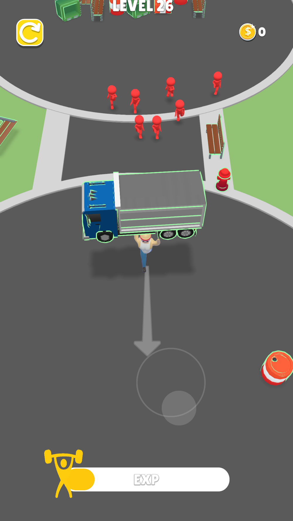 Survive by throwing objects around you at enemies. Control character with joystick.