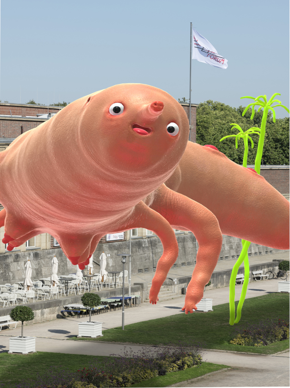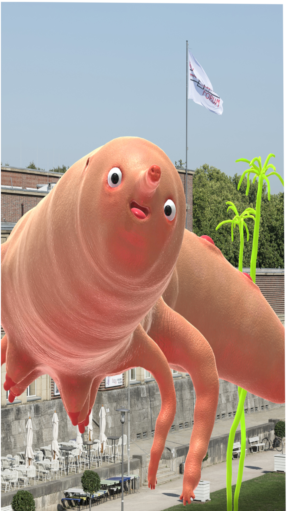 Genius Loci is a Large Scale, Site Specific Augmented Reality Installation, adapted for various locations, based on a playful interpretation on the concept of “Genius Loci” (or Spirit of Place). A large Creature with its own personalitywill be residing inside the given space, floating around, relaxing or talking to itself and the audience. The Creature is arrogant, sexy, snarky, sometimes obnoxious but also cute and lovable. The Creature will be visible through Augmented Reality on mobile devices and the audience will be able to play with it using touch-screen interactions. This encounter with the humorous and the sublime will be a collective viewing experience that aims to bring people together.
